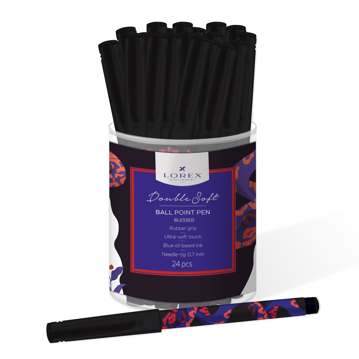 Ручка маслян. LOREX BLESSED Double Soft синий 0,7 мм дизайн кругл. корп. ultra-soft touch грип игольчатый наконечник