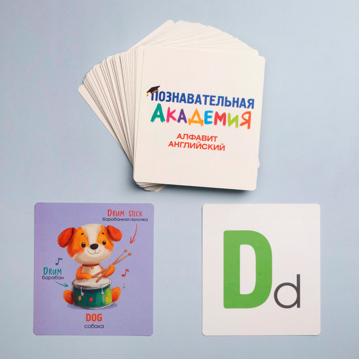 Рады представить вам новые обучающие наборы карточек «Познавательная академия». Среди первых поступлений — наборы для изучения как русского, так и английского алфавита. Каждый набор содержит 60 карточек, которые превращают обучение в увлекательную и познавательную игру.