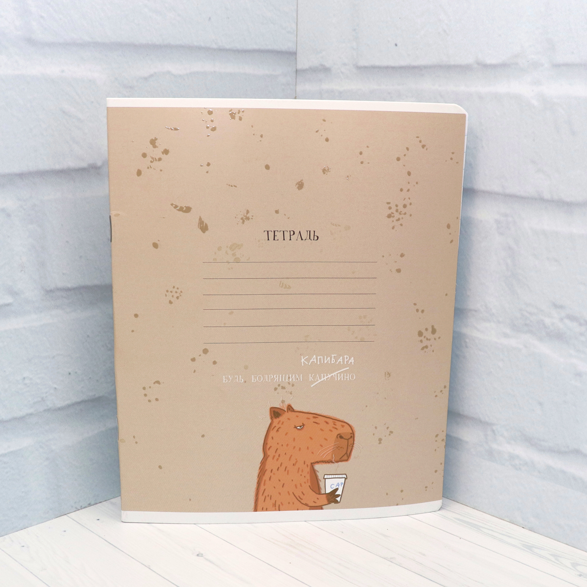 Обложка тетради серии «Будь как Капибара» отпечатана с применением выборочного УФ-лака Брайля.