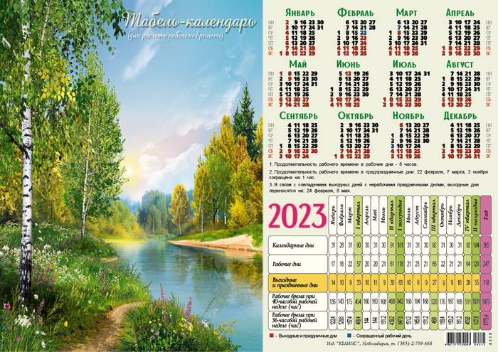 Календарь-табель «Природа» на 2023 год