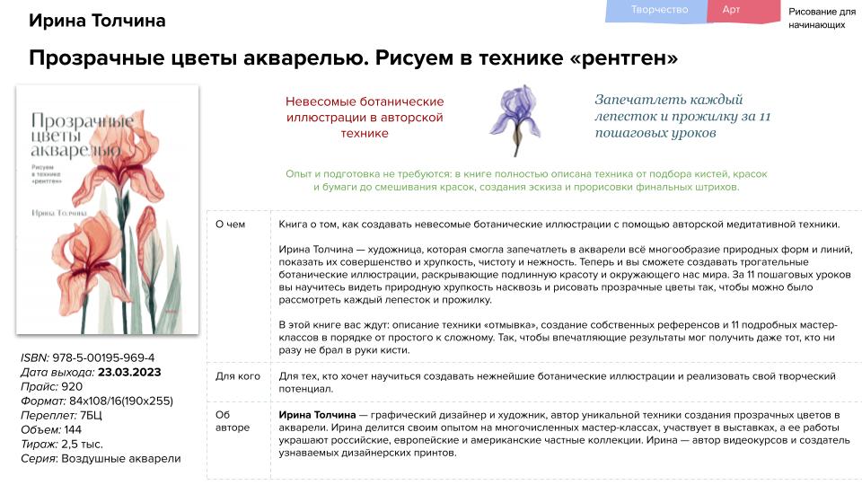 Научиться рисовать прозрачные цветы акварелью, изучить историю цвета, освоить акварельный джаз, познакомится с карело-финскими мифами — эти и другие творческие скилы вы можете приобрести благодаря апрельским новинкам издательств «МИФ».