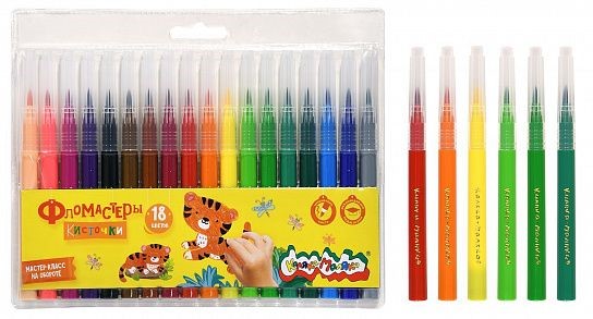 Фломастеры-кисточки в 18 цветах