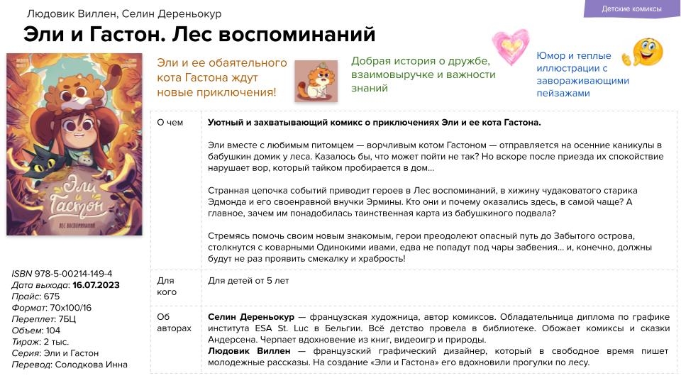 Новые приключения Эли и её кота Гастона, самые популярный комикс на платформе Webtoon, философская история в картинках от студии Мосспака, совершенно новое издание первого романа о Шерлоке Холмсе, одна из самых популярных маньхуа — эти и другие новинки комиксов вышли в издательстве «МИФ» в июле 2023 года.