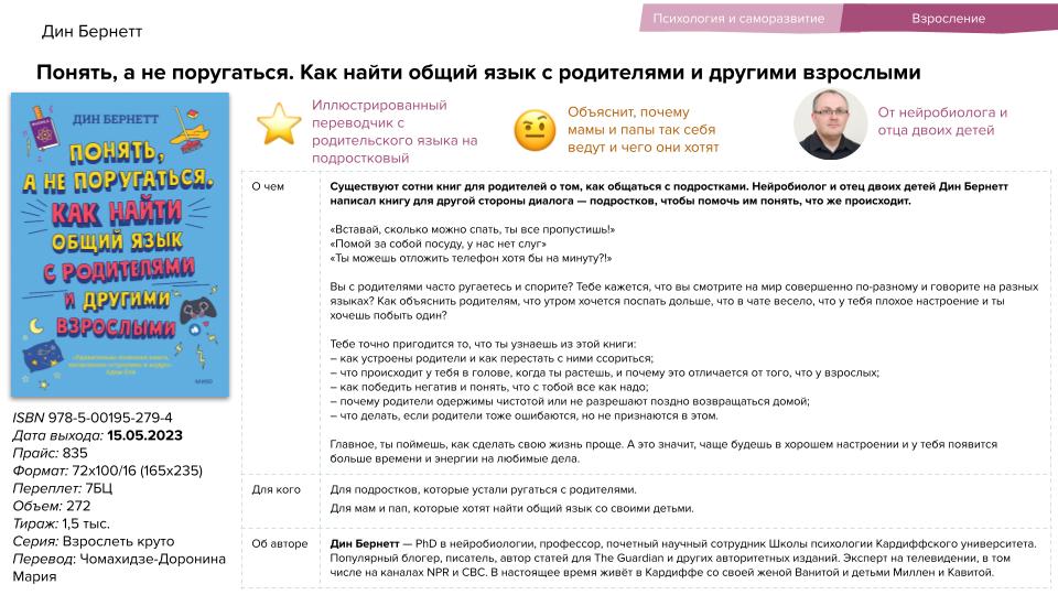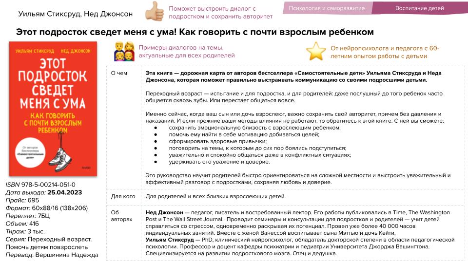 Принципы тренировок великих спортсменов, диалоги на актуальные темы для родителей, Монтессори по-японски, книга о страсти и отношениях, профессиональный психоанализ, истории из практики российских лидеров и экспертов — эти и другие новинки представляет в мае 2023 года издательство «МИФ».