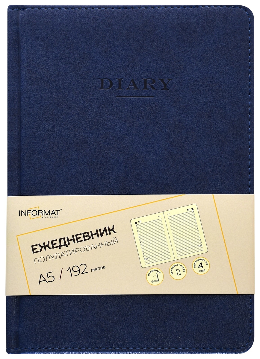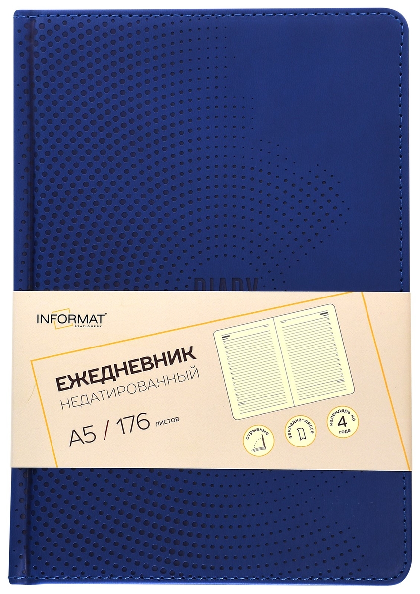 Ежедневник А5 недат. INFORMAT ИДЕЯ 176 л. синий тв. обл. тисн. обрез бежев. ляссе лин.