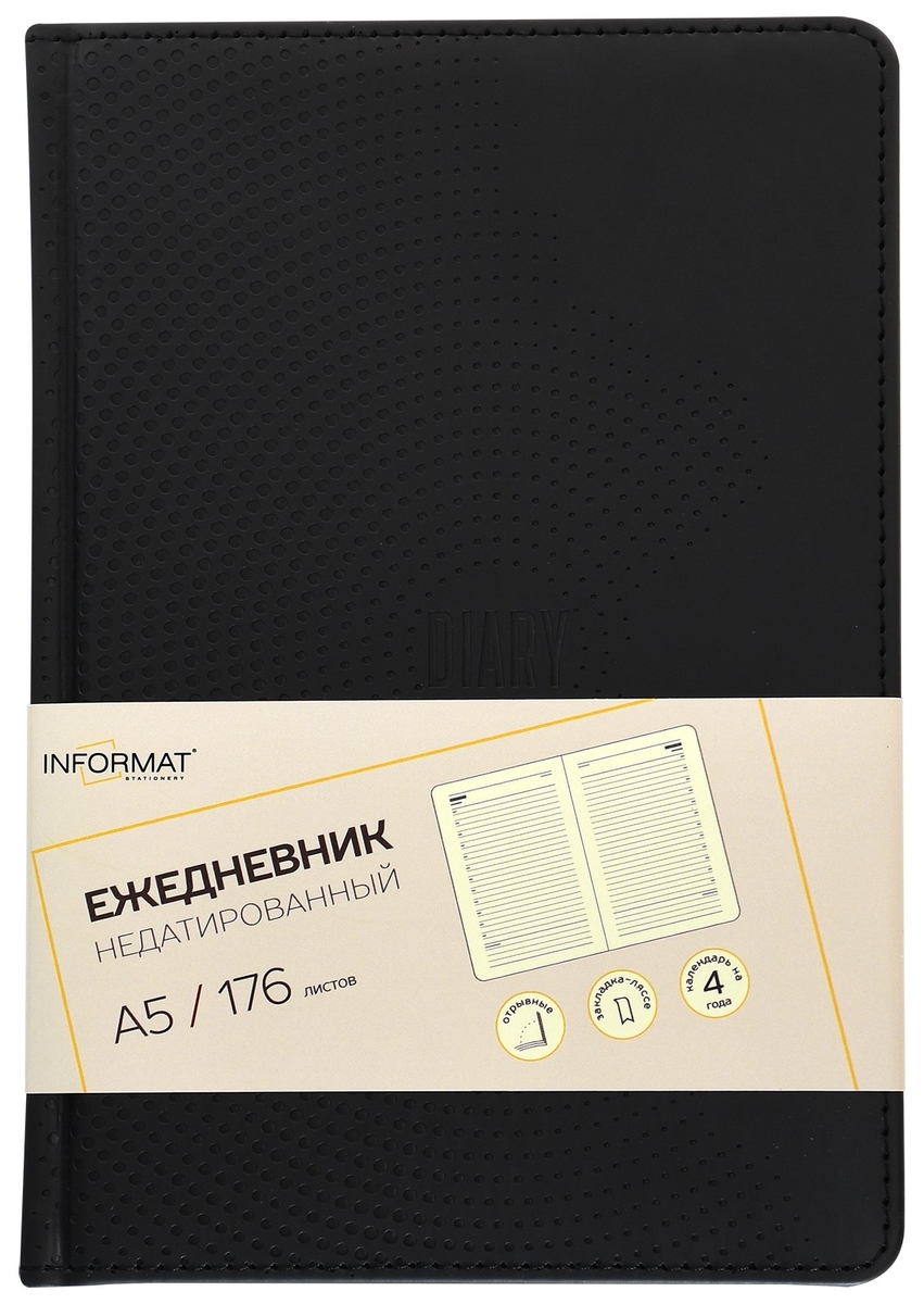 Ежедневник А5 недат. INFORMAT ИДЕЯ 176 л. чёрн. тв. обл. тисн. обрез бежев. ляссе лин.