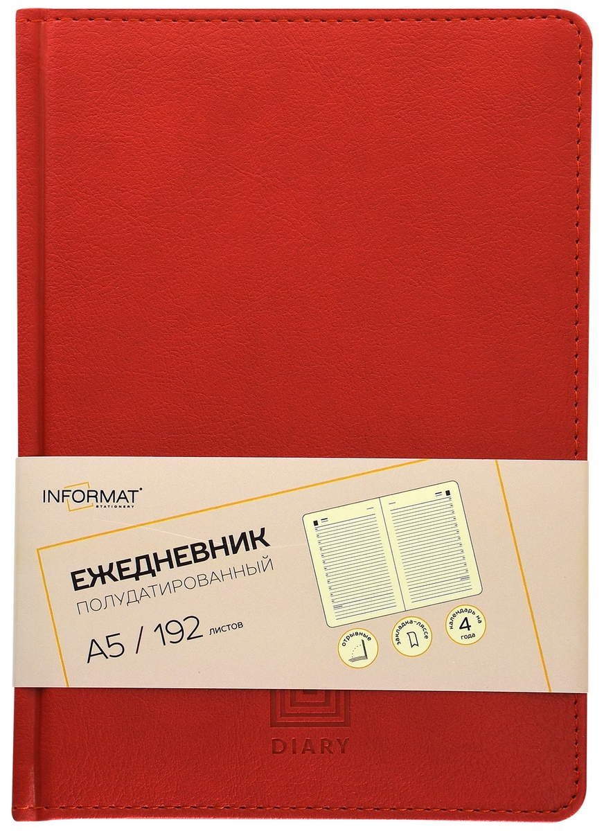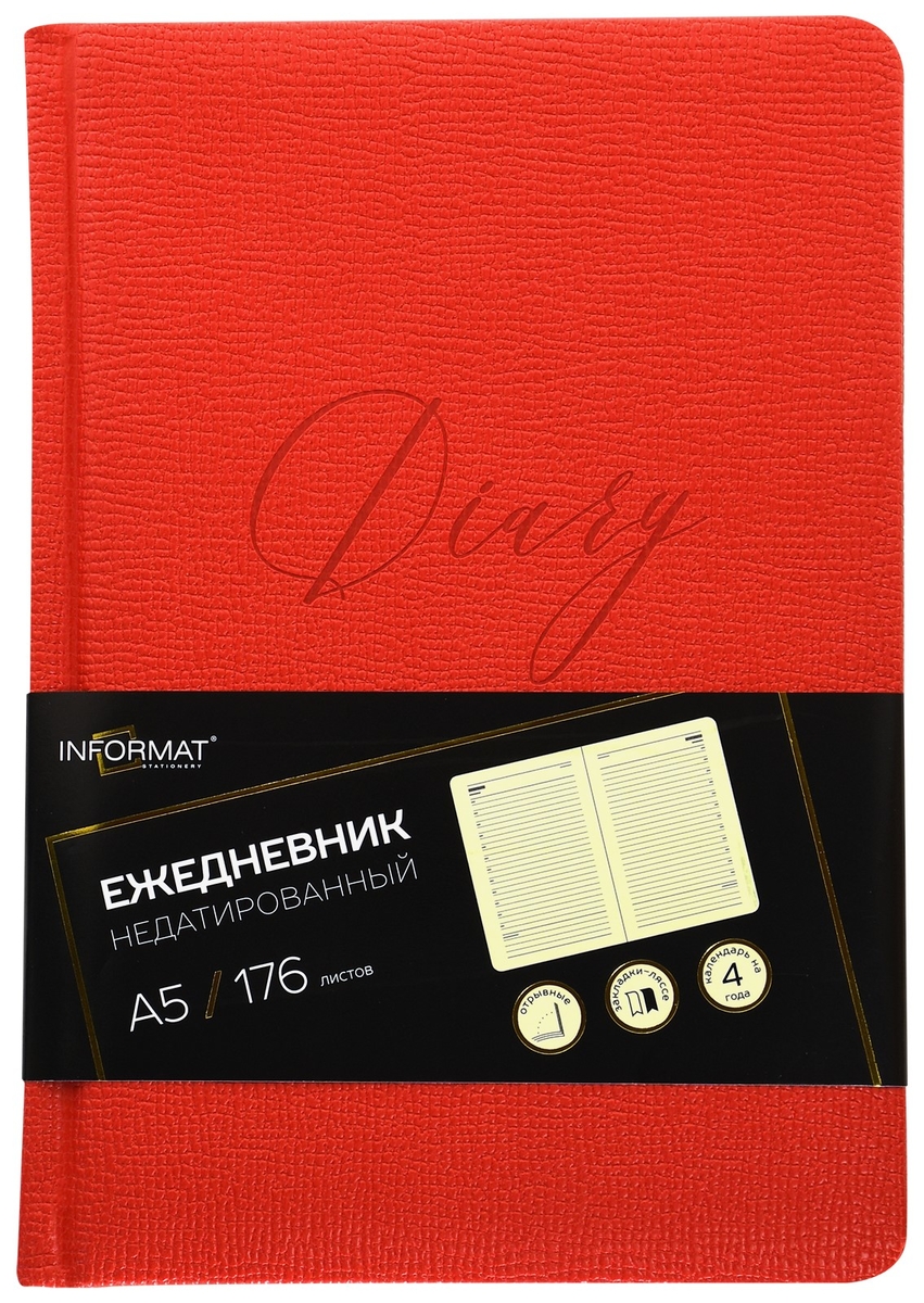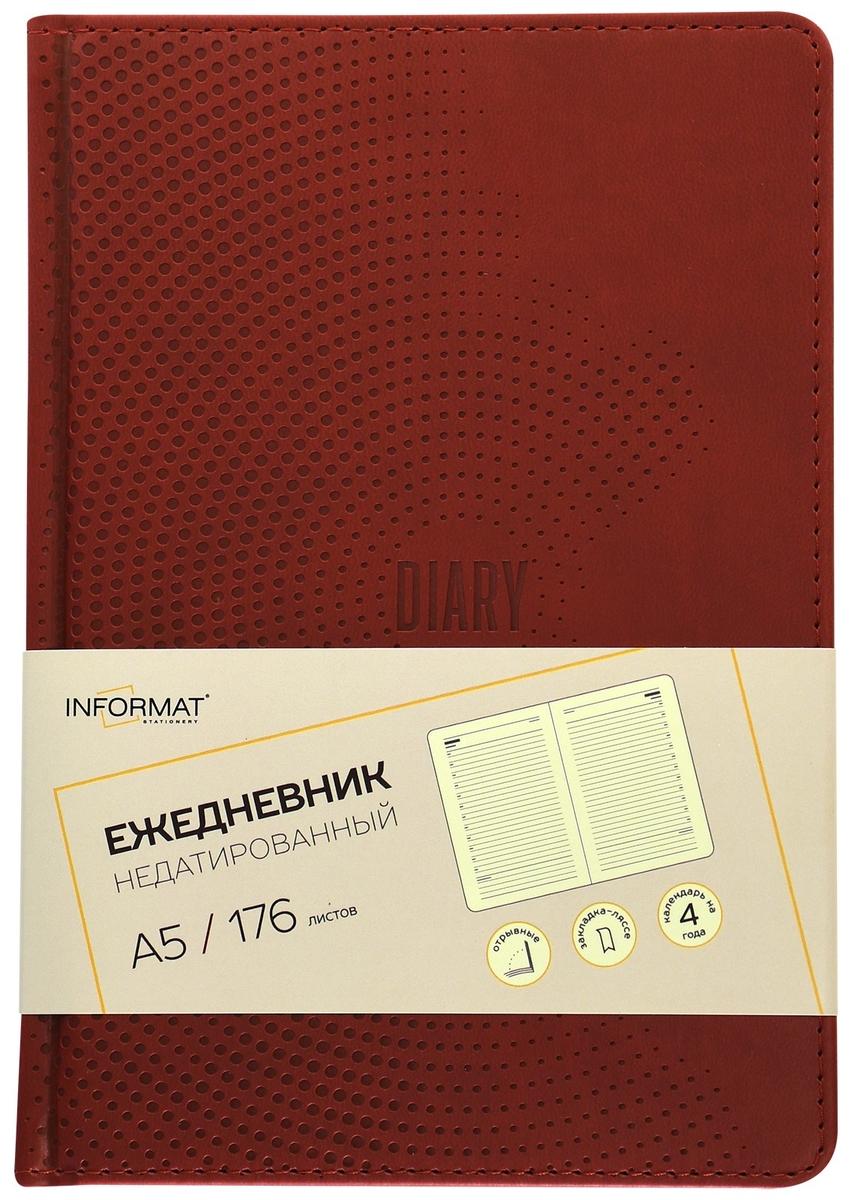 Ежедневник А5 недат. INFORMAT ФЕНОМЕН 176 л. красн. тв. обл. тисн. обрез красн. ляссе лин.