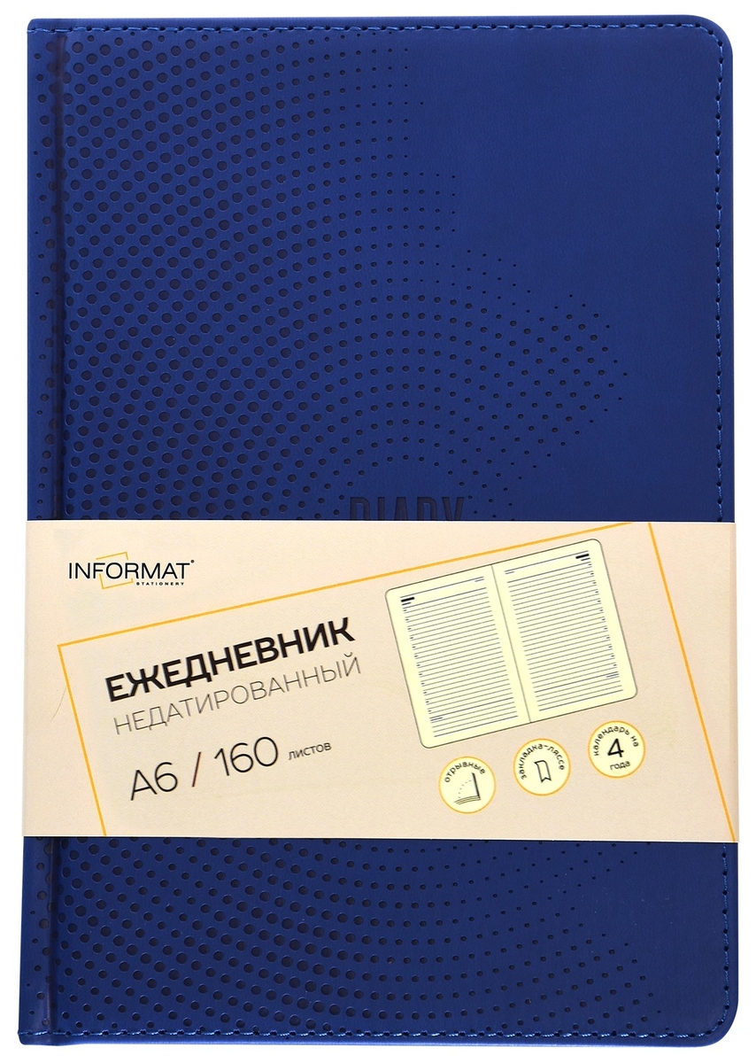 Ежедневник А6 недат. INFORMAT ИДЕЯ 160 л. синий тв. обл. тисн. обрез бежев. ляссе лин.