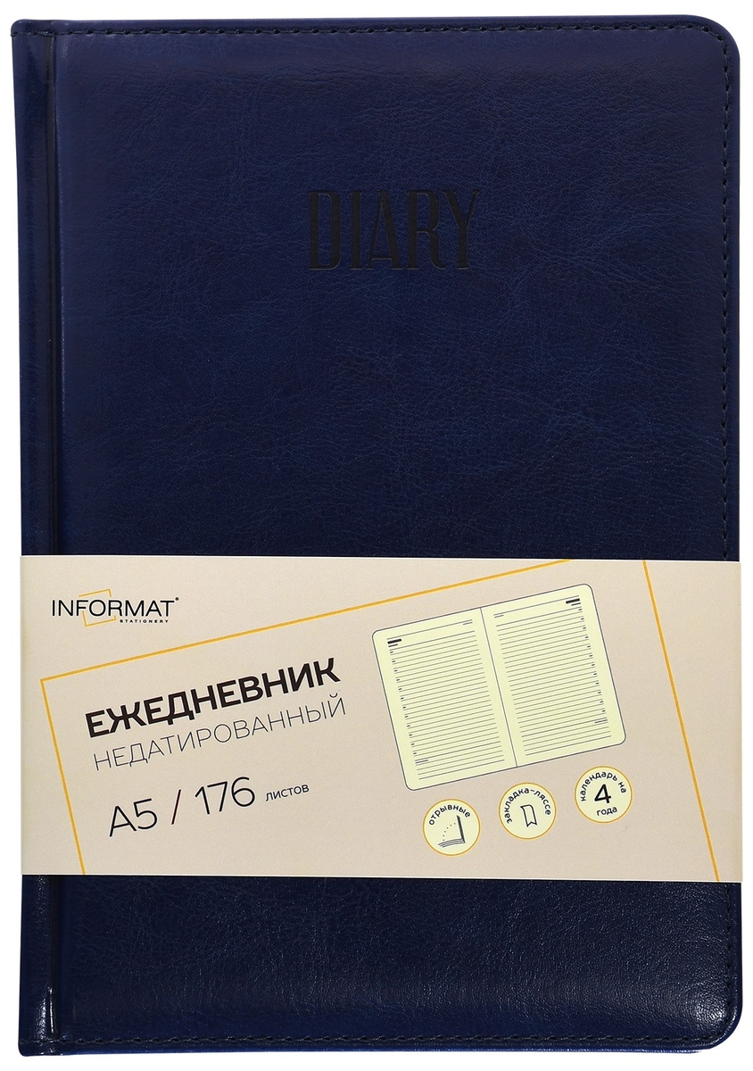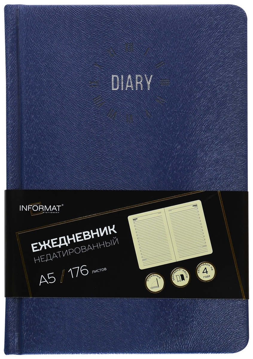 Ежедневник А5 недат. INFORMAT БИЗНЕС 176 л. синий тв. обл. тисн. обрез белый ляссе лин.