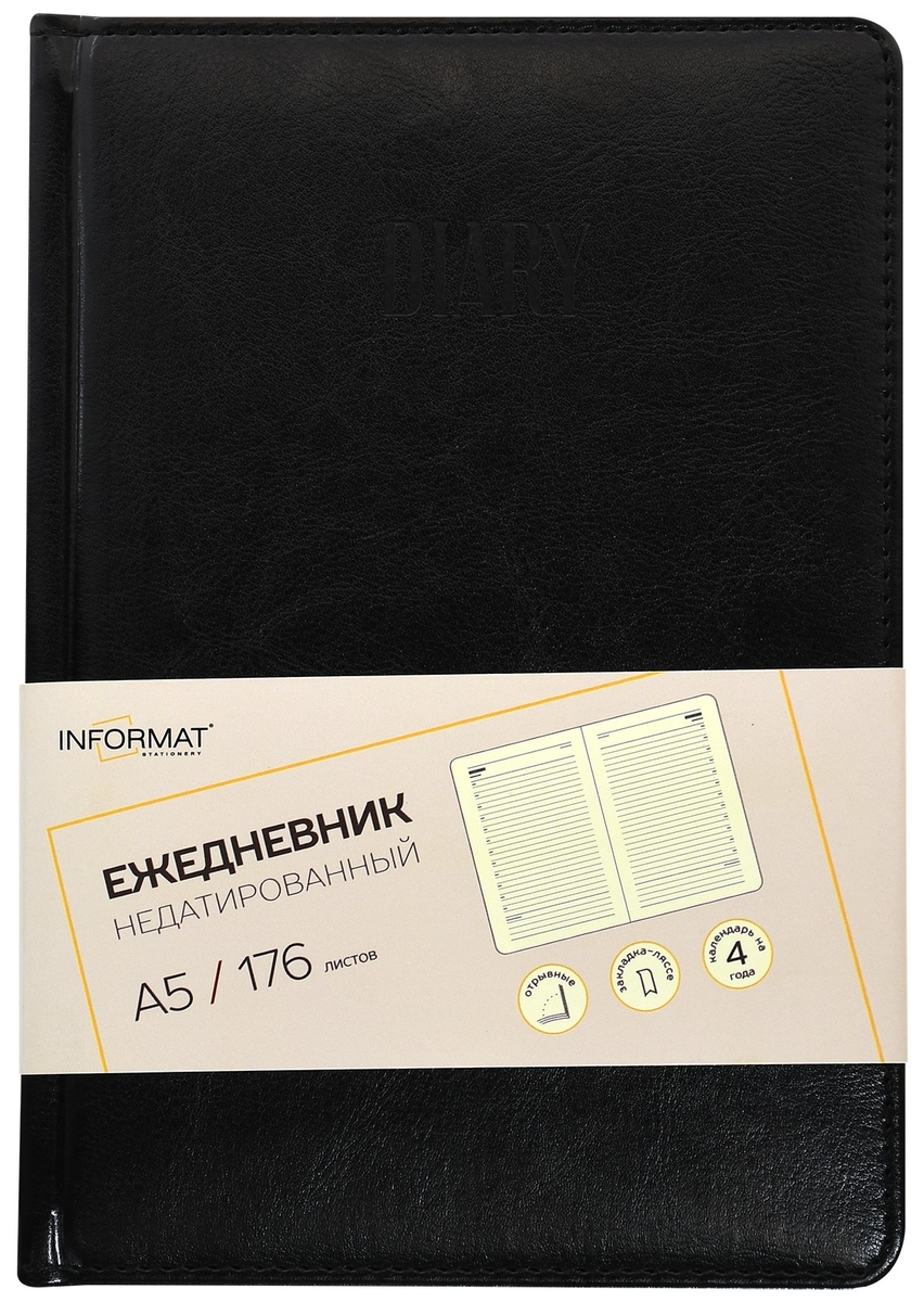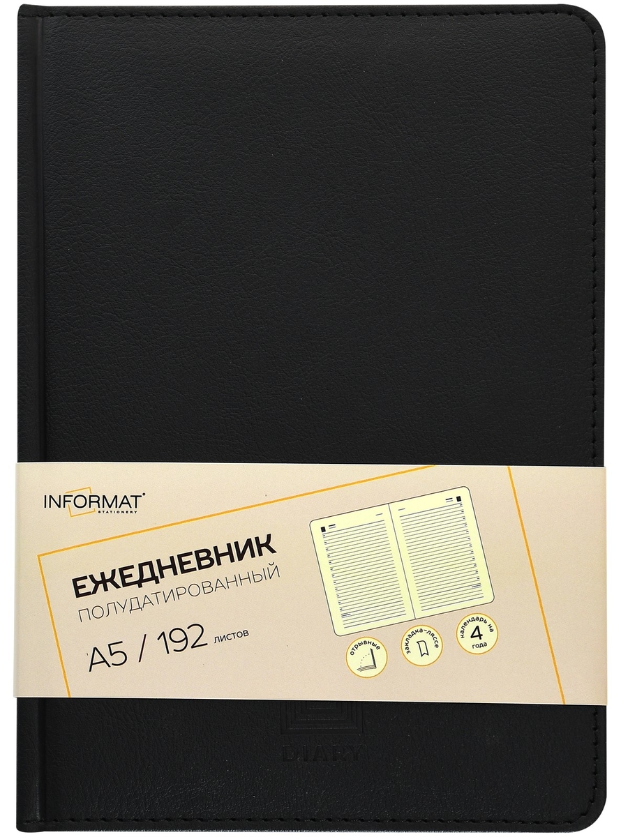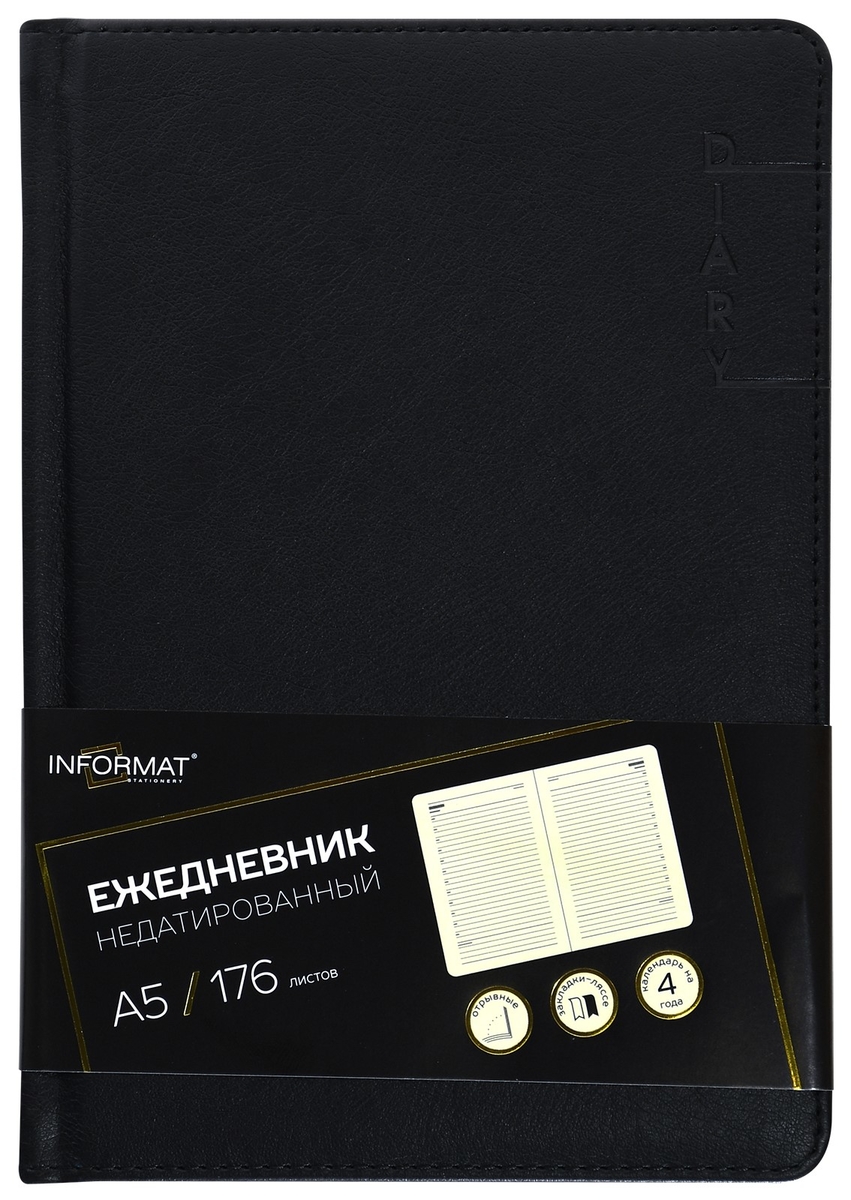 Ежедневник А5 недат. INFORMAT БИЗНЕС 176 л. чёрн. тв. обл. тисн. обрез белый ляссе лин.