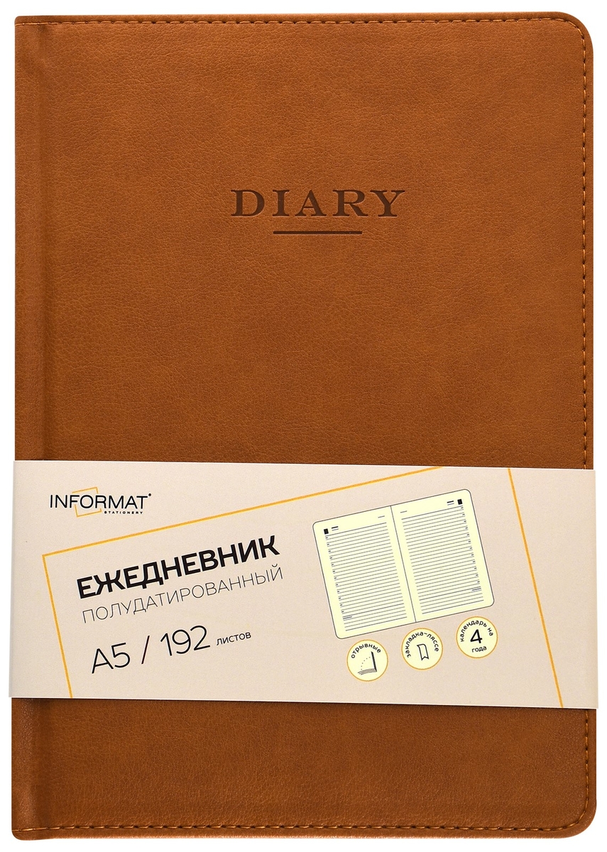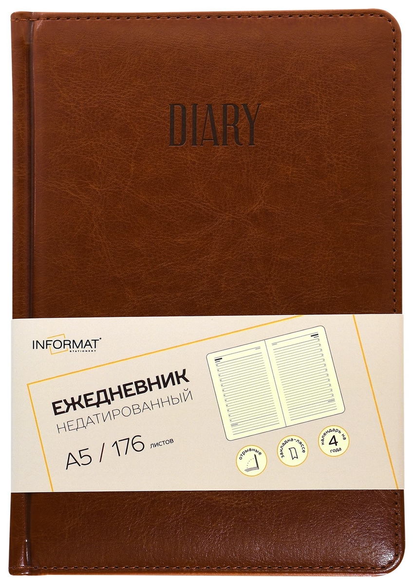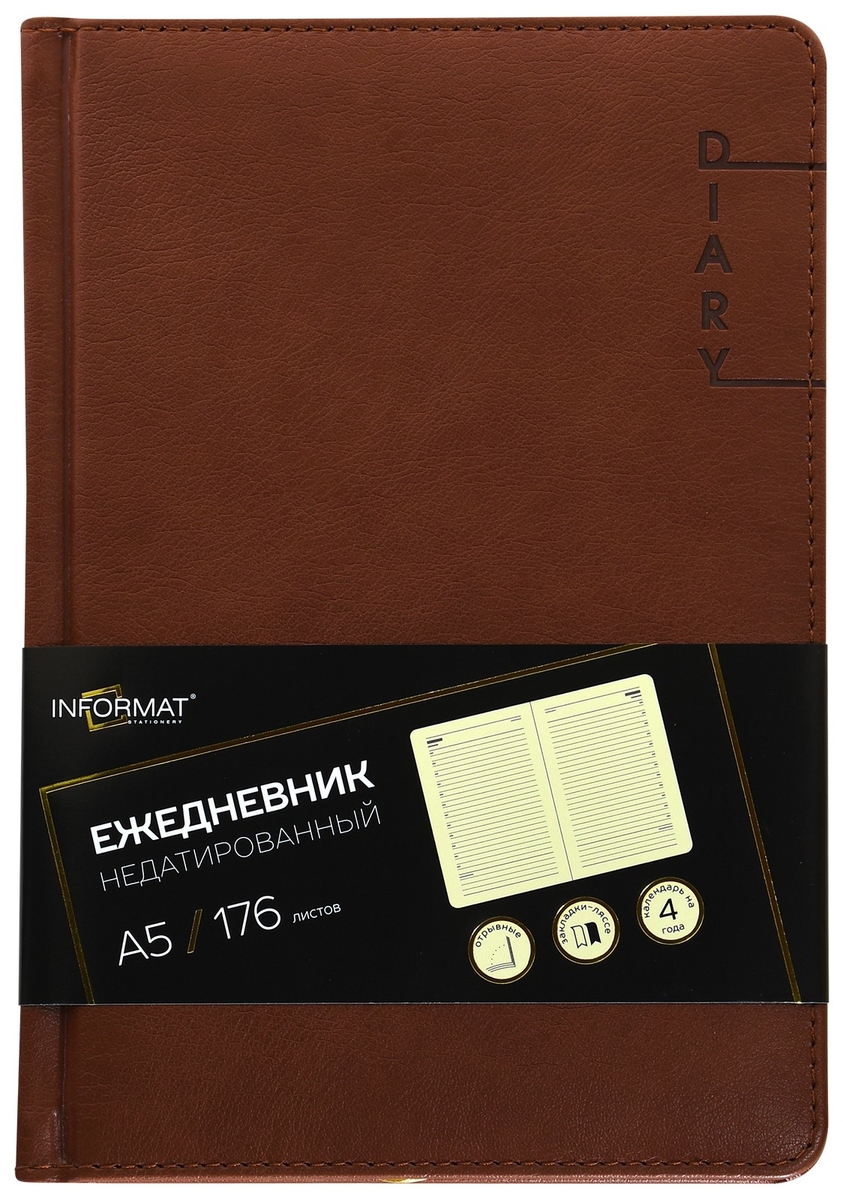 Ежедневник А5 недат. INFORMAT ИДЕЯ 176 л. корич. тв. обл. тисн. обрез бежев. ляссе лин.