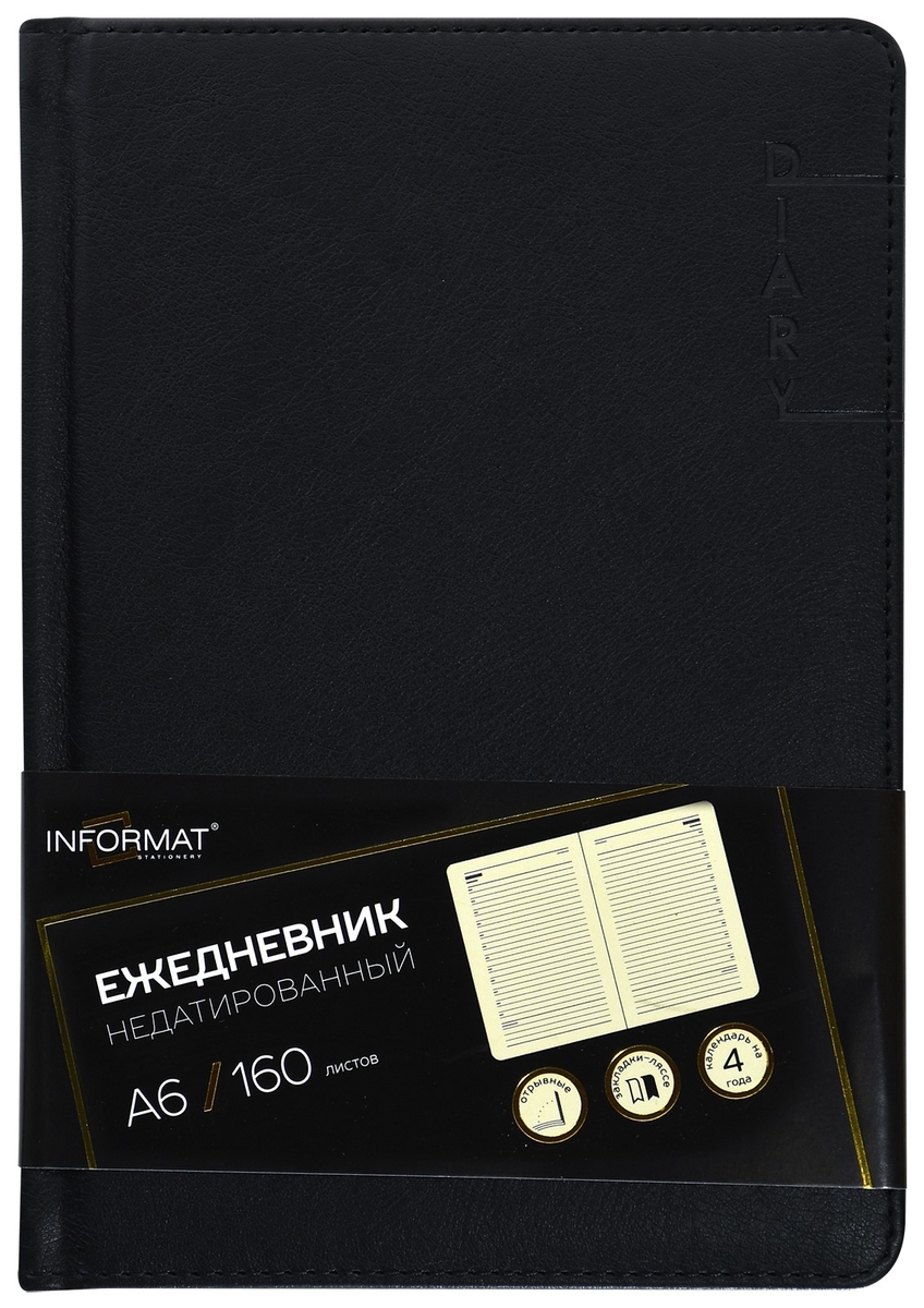 Ежедневник А6 недат. INFORMAT ИДЕЯ 160 л. чёрн. тв. обл. тисн. обрез бежев. ляссе лин.