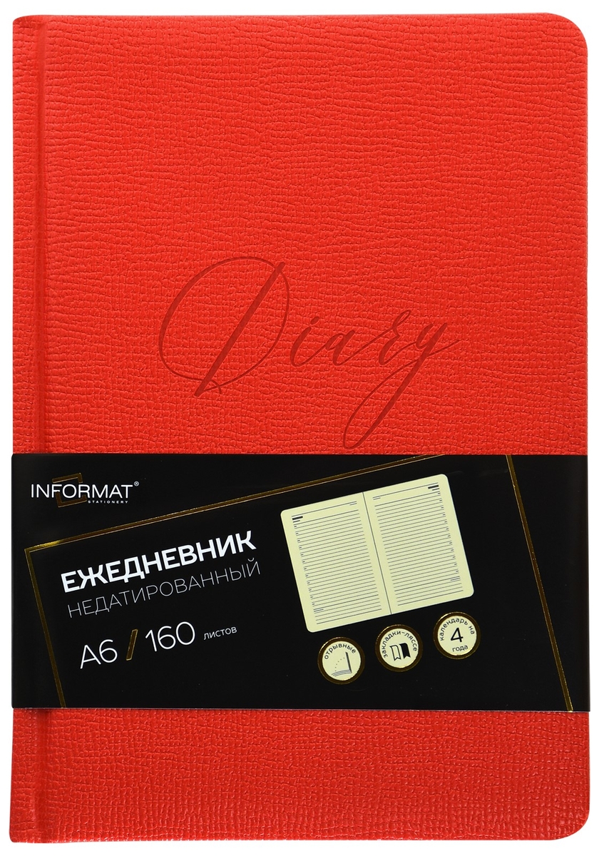 Ежедневник А6 недат. INFORMAT ФЕНОМЕН 160 л. красн. тв. обл. тисн. обрез красн. ляссе лин.