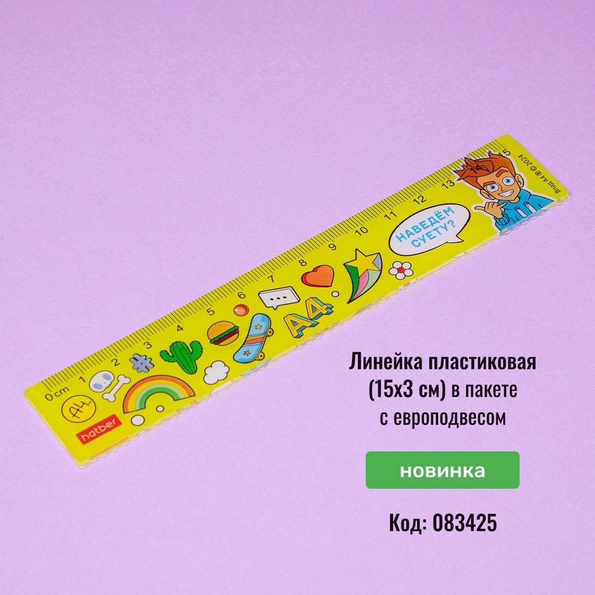 Пластиковая линейка «Влад А4» в пакете с европодвесом. Маленькая яркая линейка на 15 см с ярким, весёлым дизайном и фирменной фразой «Наведём суету?» точно понравится детям! Она уместится в пенал и станет прекрасной помощницей в чертежах и рисунках, если вдруг в них потребуются ровные линии.
