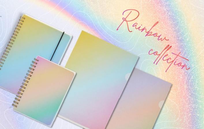 Для тех, кому всё ещё мало цвета, в ассортименте товары из коллекции Rainbow. Сдержанный градиент пастельного жёлтого, голубого, розового.