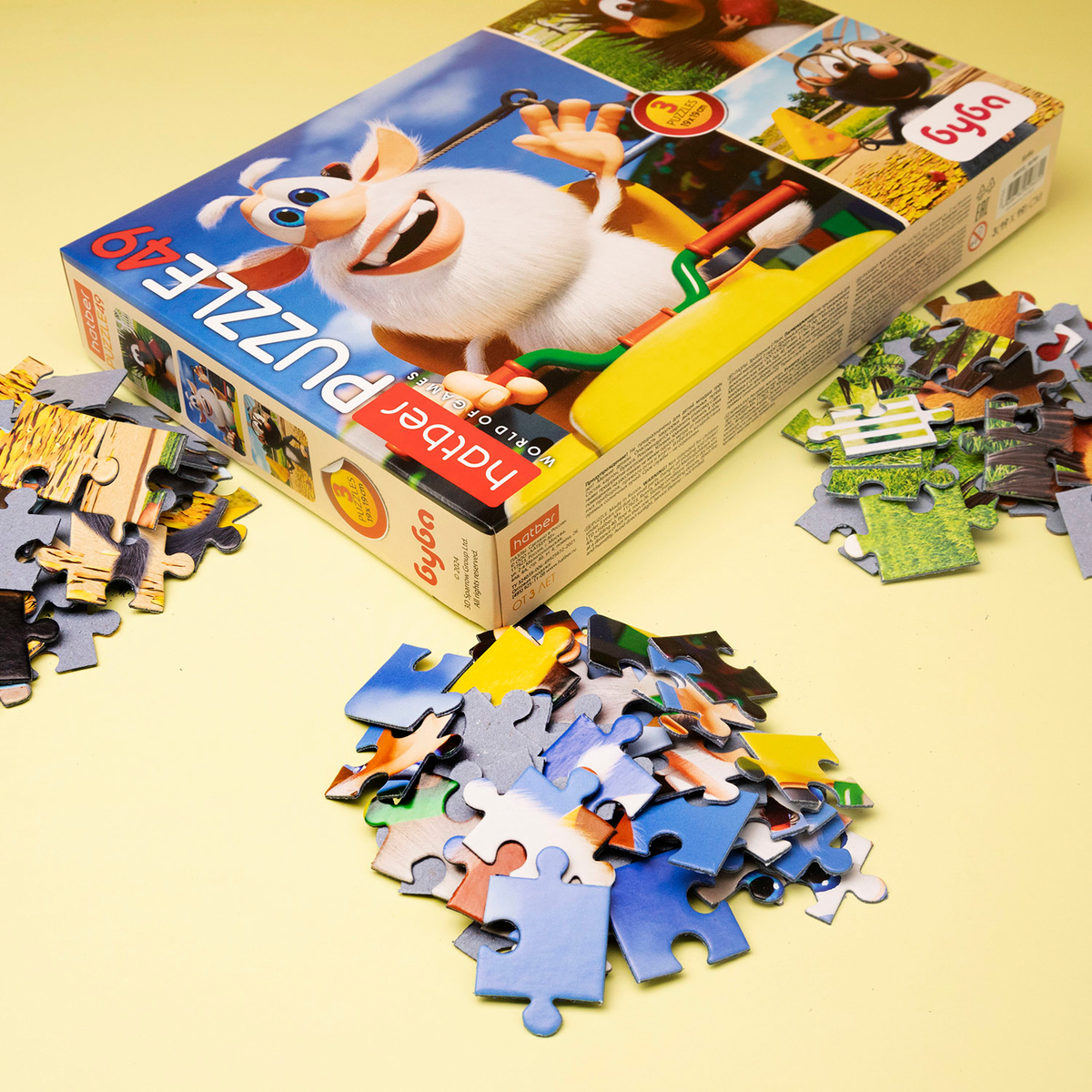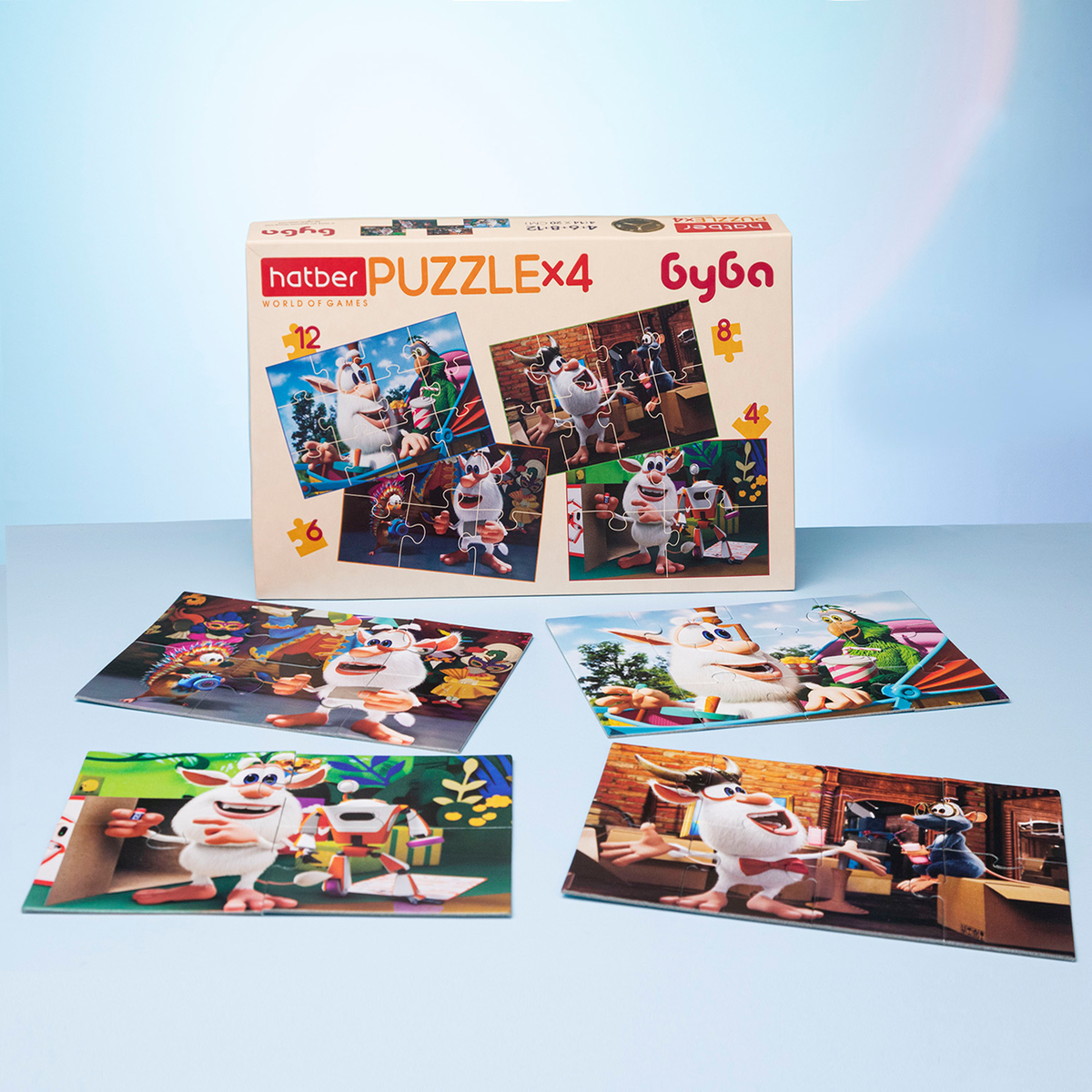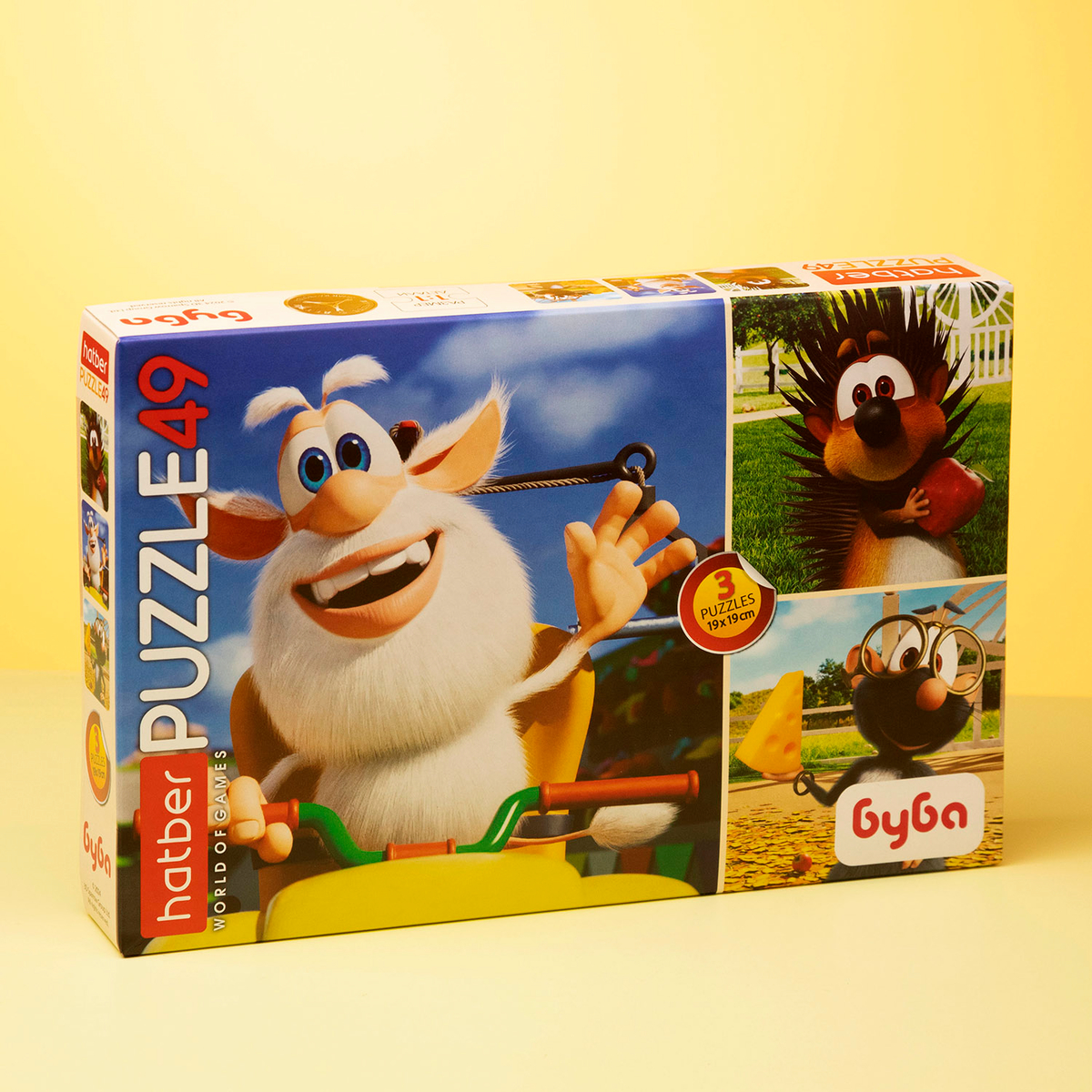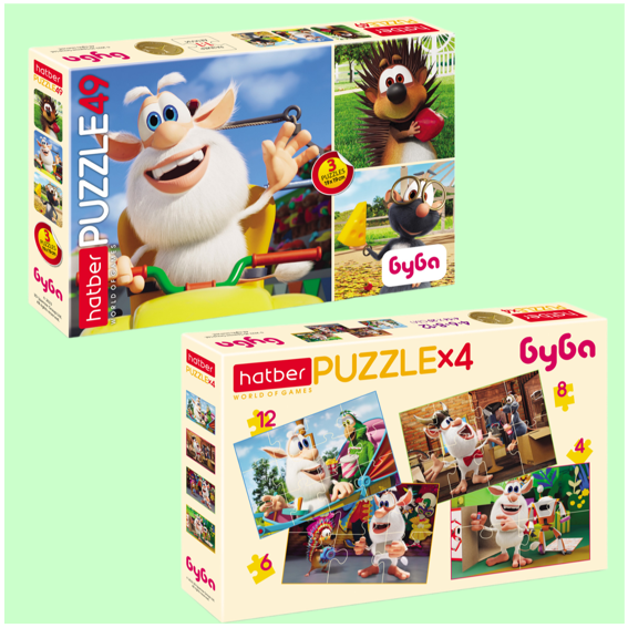 Для любителей головоломок и поклонников мультфильма «Буба» мы рады представить новинки — наборы пазлов: «3 в 1», состоящие из трёх картинок по 49 элементов, и «4 в 1» с четырьмя картинками на разное количество элементов — 4, 6, 8, 12!