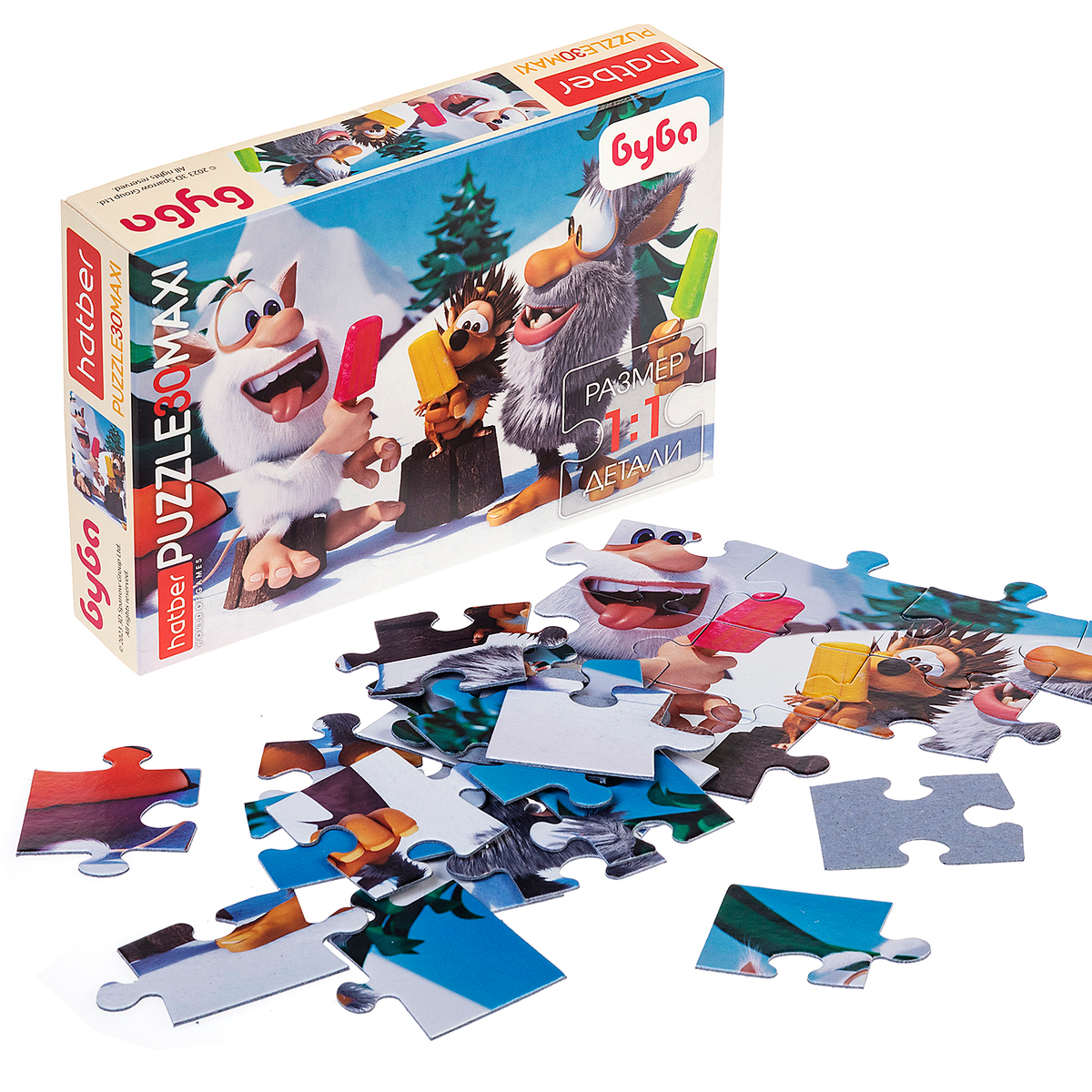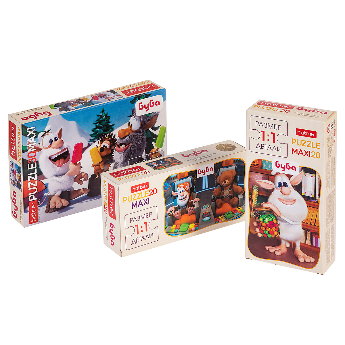 Долгожданная новинки MAXI пазлов с любимцем миллионов — забавным и весёлым домовёнком БуБой. На этот раз мы порадуем юных любителей пазлов сразу тремя дизайнами на 20 и 30 элементов.