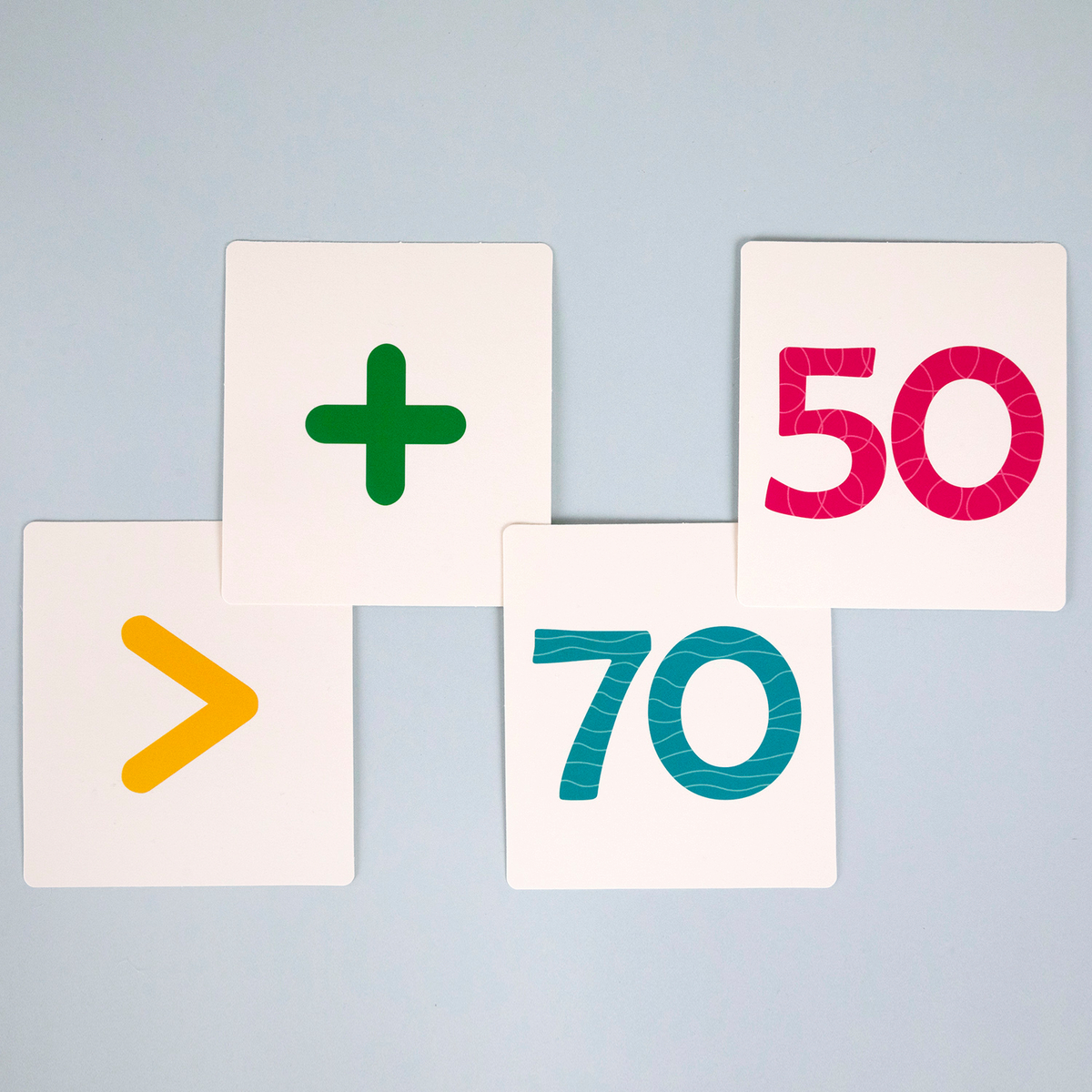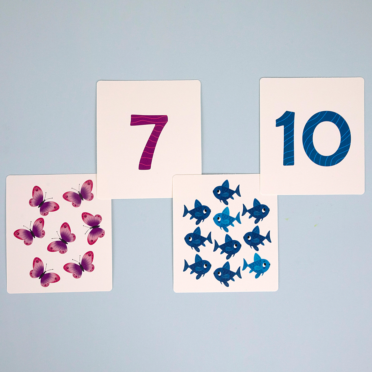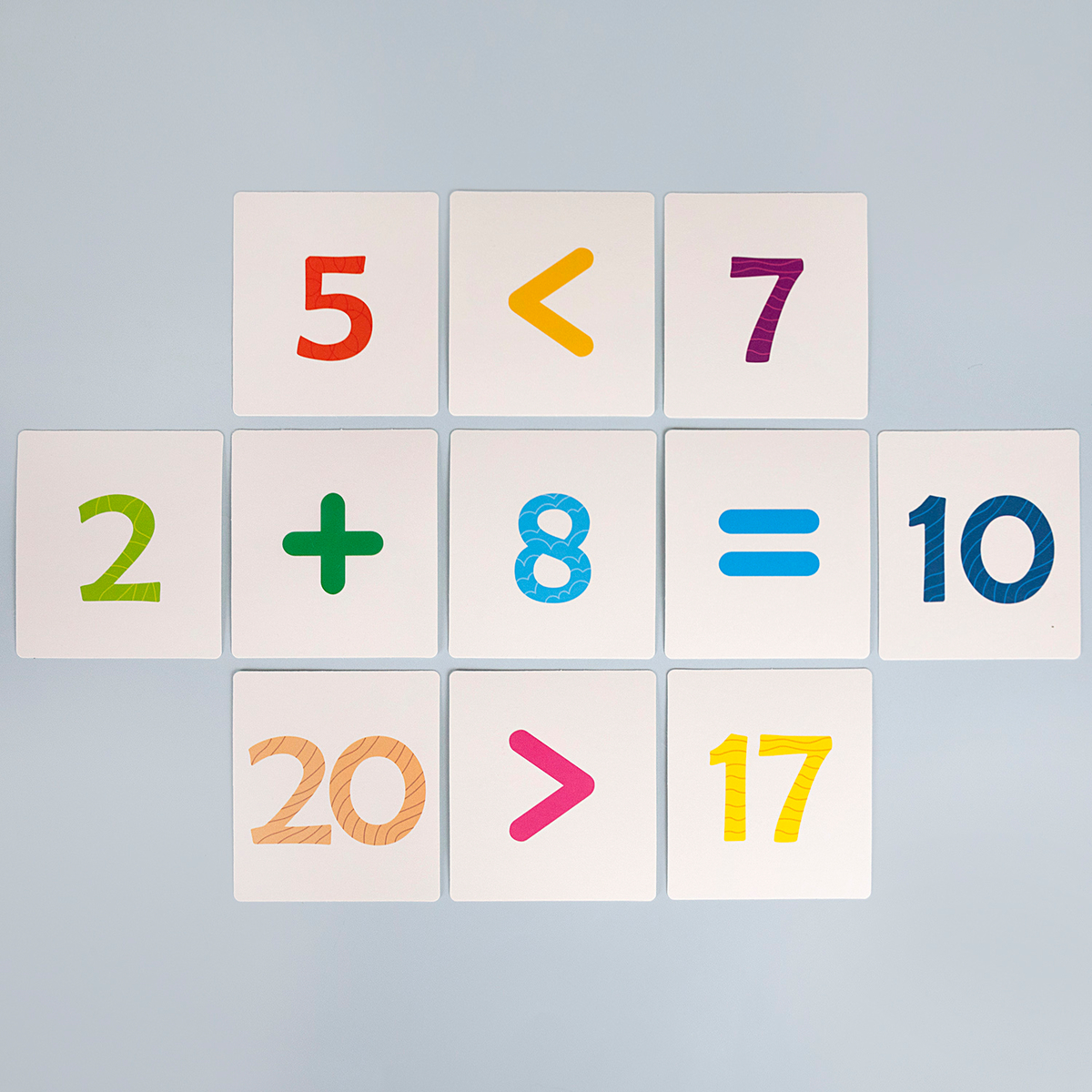 «Цифры и счёт» — это карточки с цифрами, яркими иллюстрациями, специальными знаками равенства и математическими символами. Такой комплект позволяет не просто познакомить малыша с числами, но и сделать первые шаги в решении простых примеров и составлении равенств.