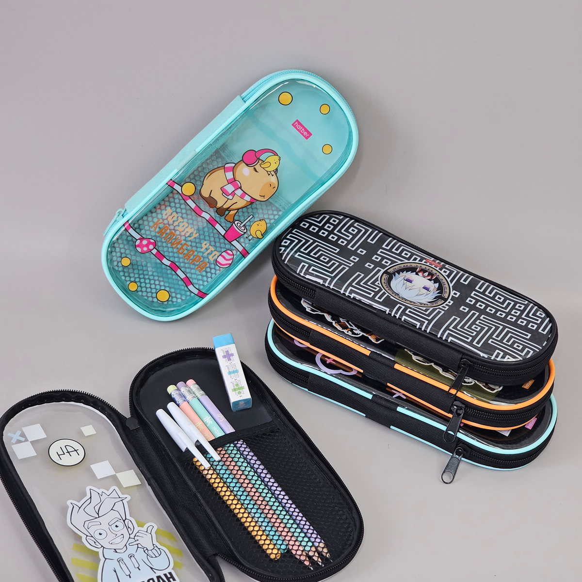 Вытянутые и плоские пеналы имеют округлую форму и уместятся даже в небольшой сумке. Благодаря прозрачной крышке пеналов можно удостовериться, на месте ли любимая ручка или нужный карандаш.