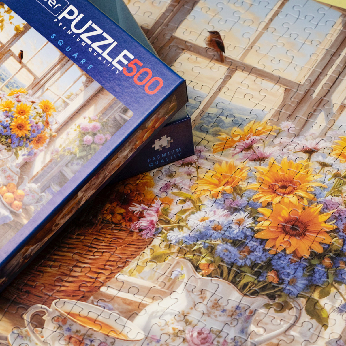 Новый пазл «На даче» — это билет в летний день, полный света и аромата. За окном залитая солнцем деревенская идиллия, столик у окна и утренний кофе, свежие круассаны и корзинка с цветами — что может быть лучше? Ты словно ощущаешь аромат свежего летнего утра, когда вокруг тишина и только лёгкий ветерок шуршит листвой.