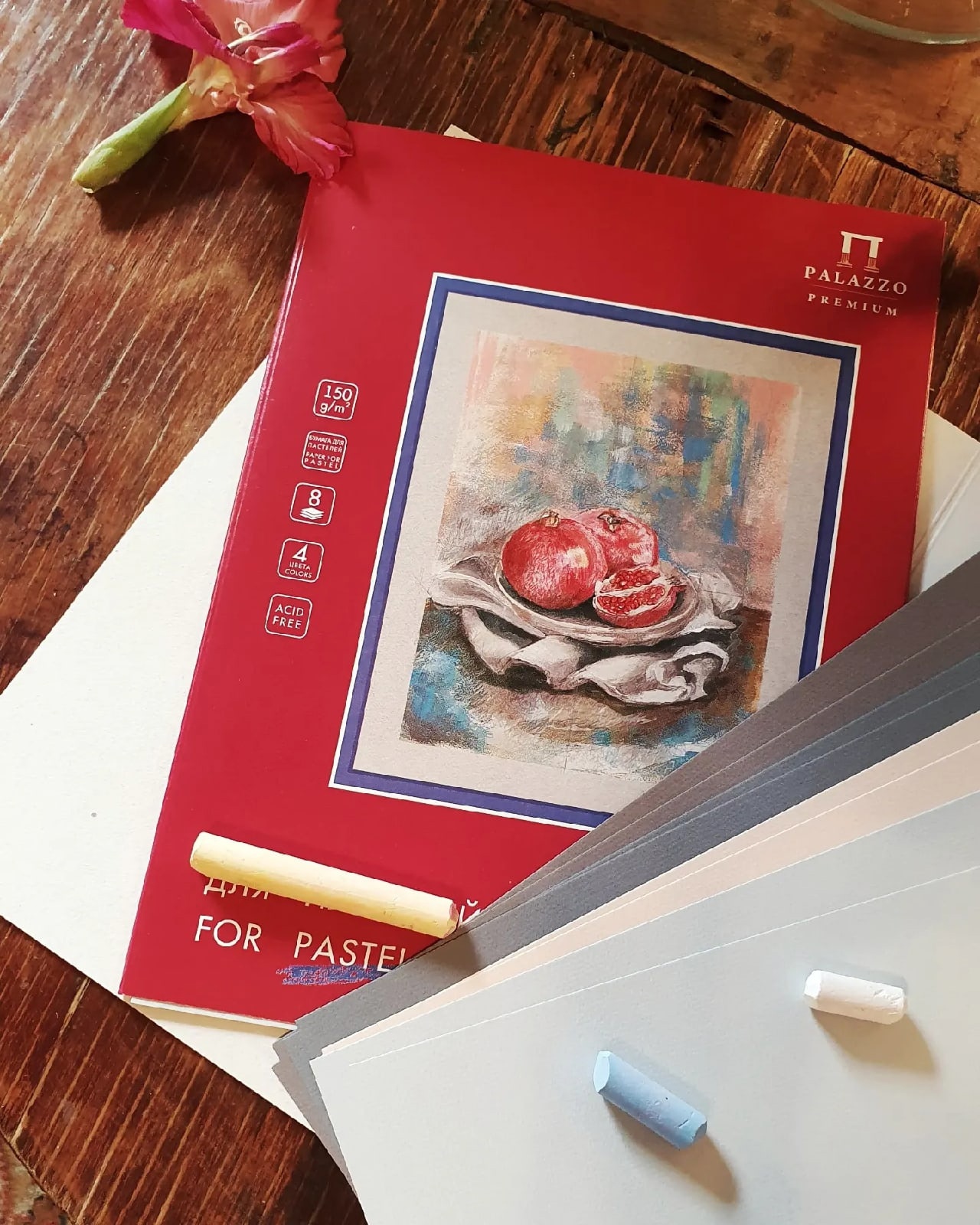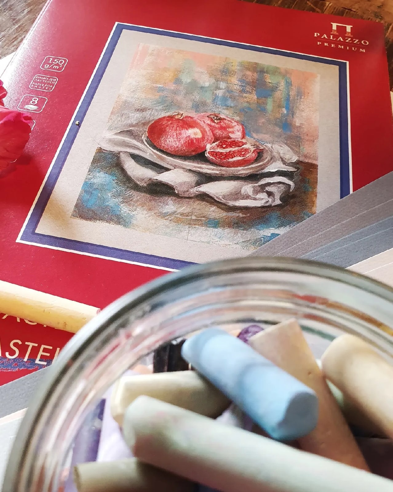 Цветная бумага поможет оттенить цвет мелка и придать работе особый шарм и настроение. Пастель хорошо сочетается и с другими материалами: гуашью, акрилом, акварелью, темперой.