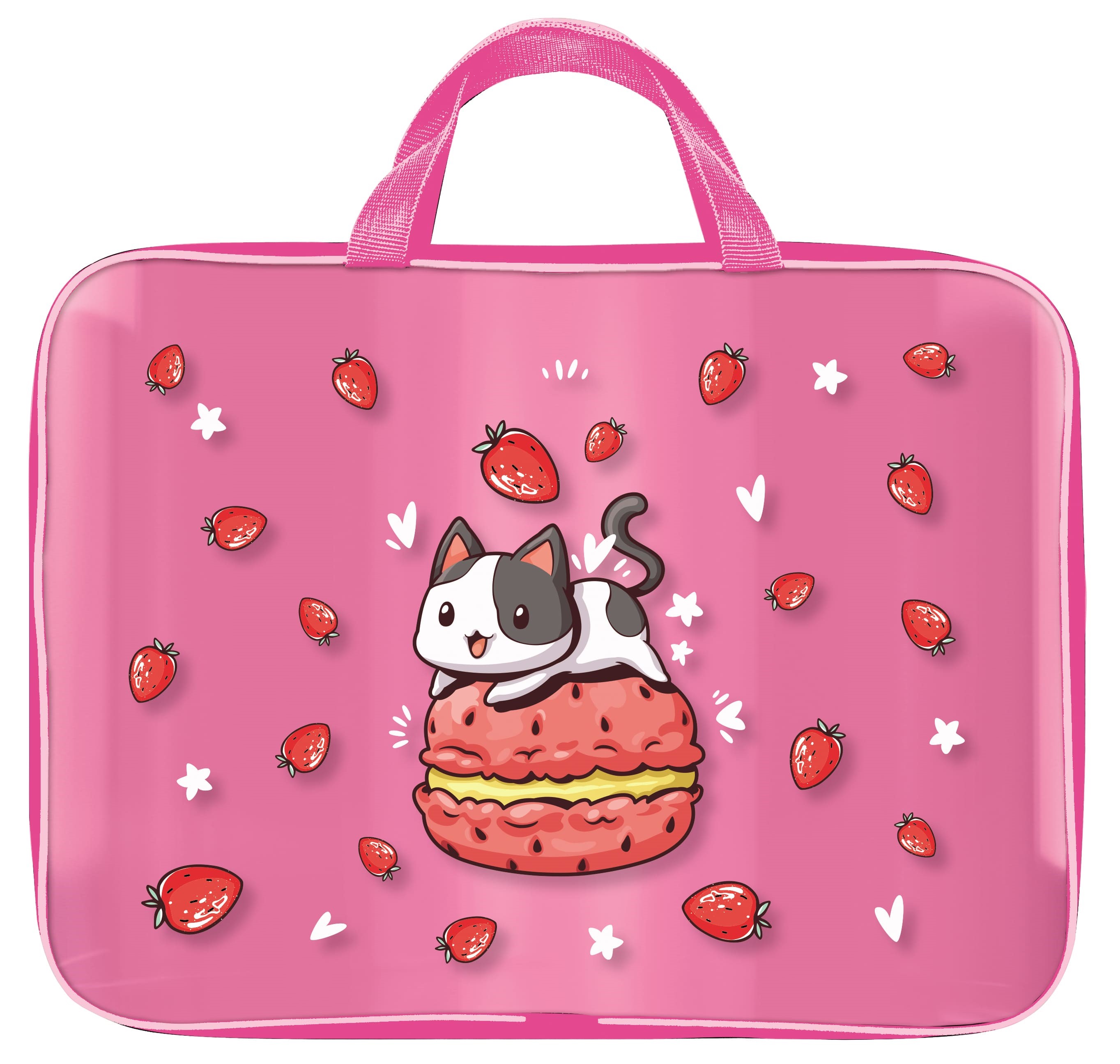 Папка д/труда с ручкой А4 Schoolformat STRAWBERRY CAT 38х29х6 ПВХ роз. д/девочек