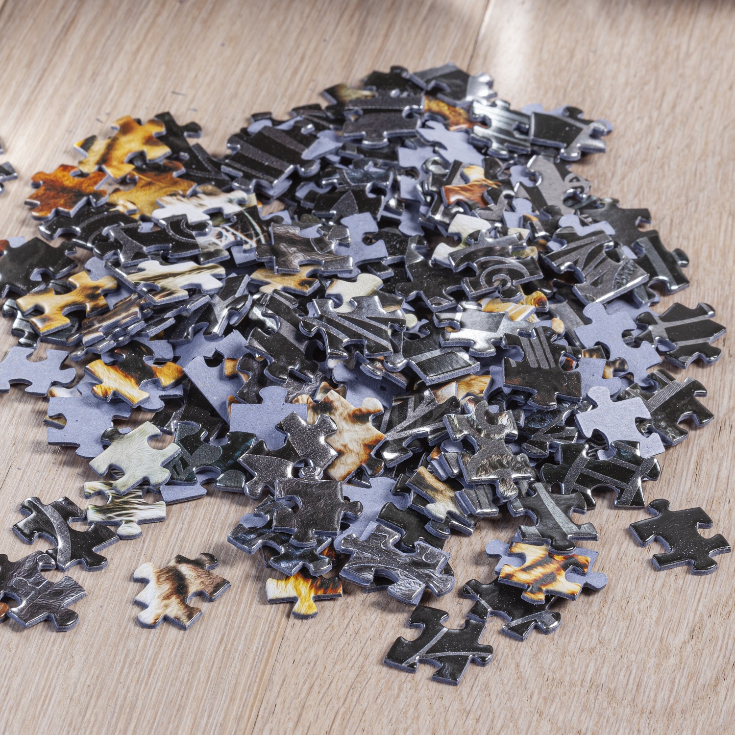 Собирать пазл с леопардом – одно удовольствие. Черный фон дополнен металлизированными вставками в виде орнаментов. Готовая картина хорошо играет на свету, бликуя под разными углами зрения.