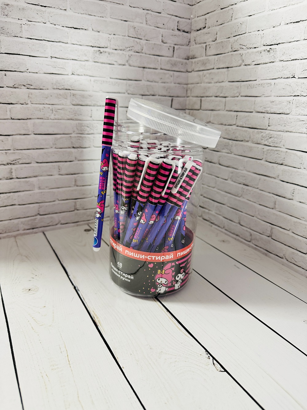 Гелевые ручки в коллекциях Kuromi, My Melody, Gudetama, Bad Badtz-Maru для аккуратного и безошибочного письма. Мгновенная корректировка линий любой толщины без следов и деформации бумаги с помощью ластика, расположенного на верхней части ручки. После удаления чернил исправленная область моментально готова к продолжению работы с ней.