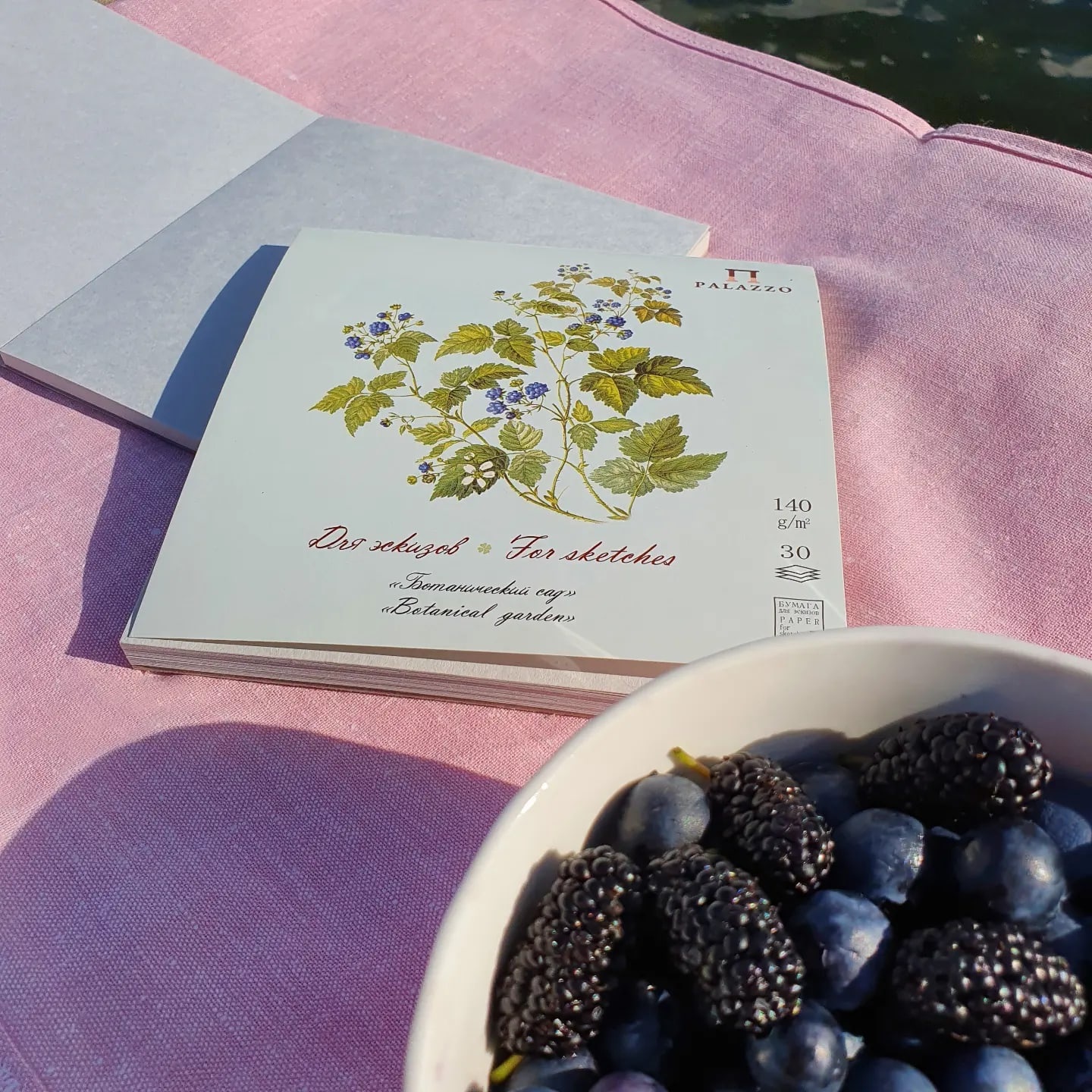 Лето — время не только прекрасных цветов, но и сочных ароматных ягод. Внутри миниатюрного ягодного планшета для графики «Ботанический сад. Ежевика» 30 листов гладкой бумаги светло-голубого оттенка, плотность 140 г/кв. м, формат 15х15 см.