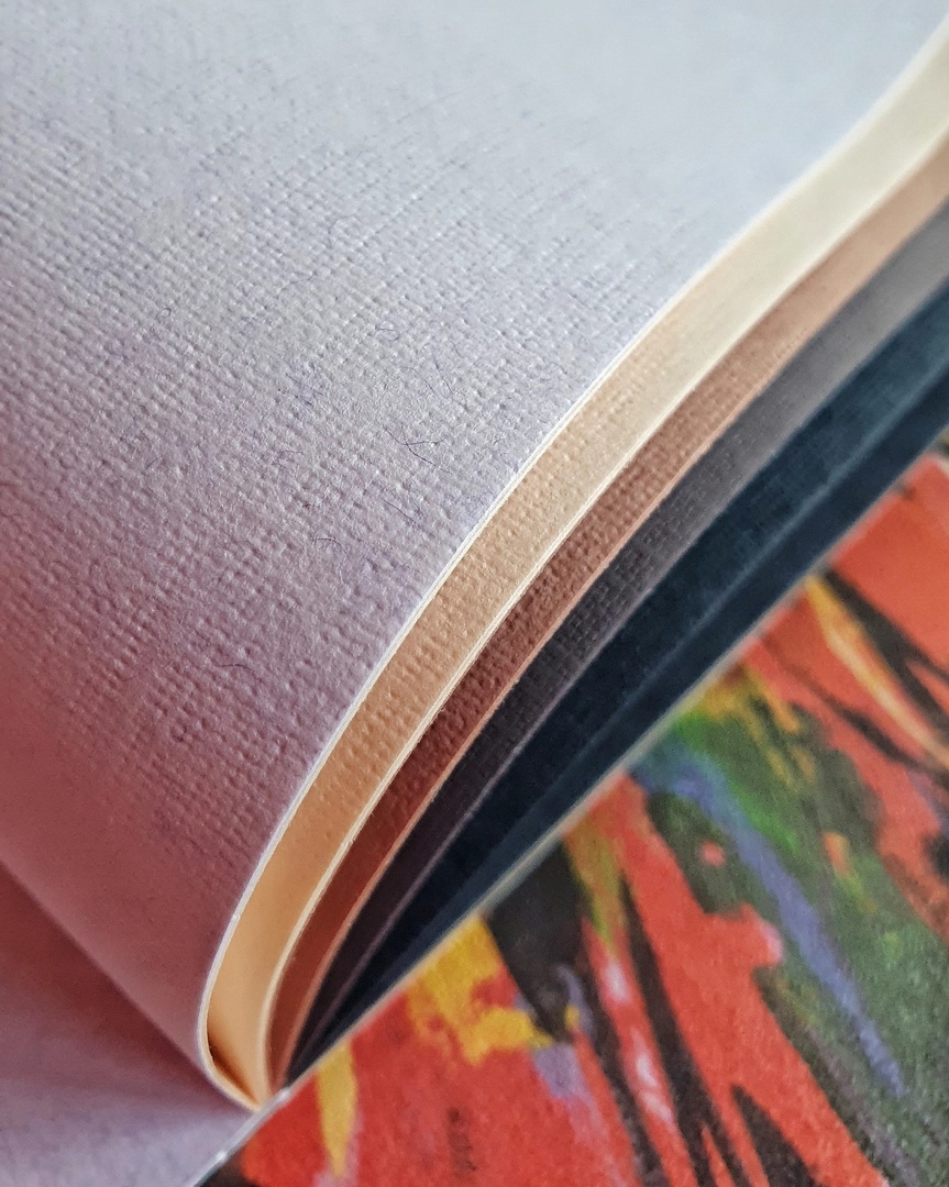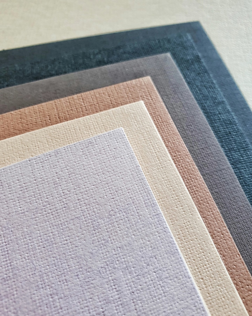 Бумага внутреннего блока имеет плотность 160 г/кв. м, cодержит 40 % хлопкового волокна и имеет тиснение «холст».