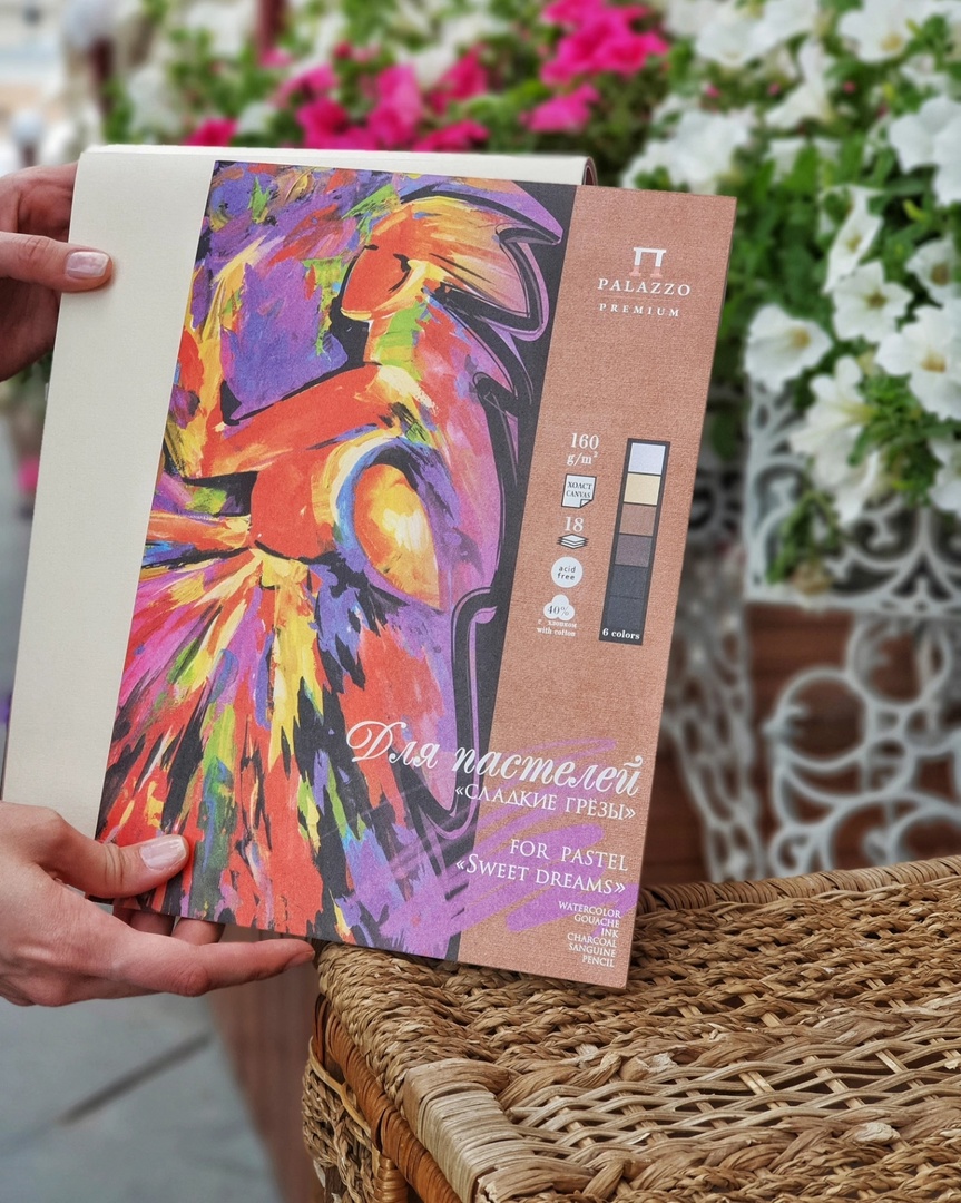 Планшет «Сладкие грёзы» выпускает в трёх форматах: А4, А3 и А2. Предназначен для работы пастелью, а также с легкостью можно использовать любой другой мягкий материал (соус, сангину, уголь и т. д.).