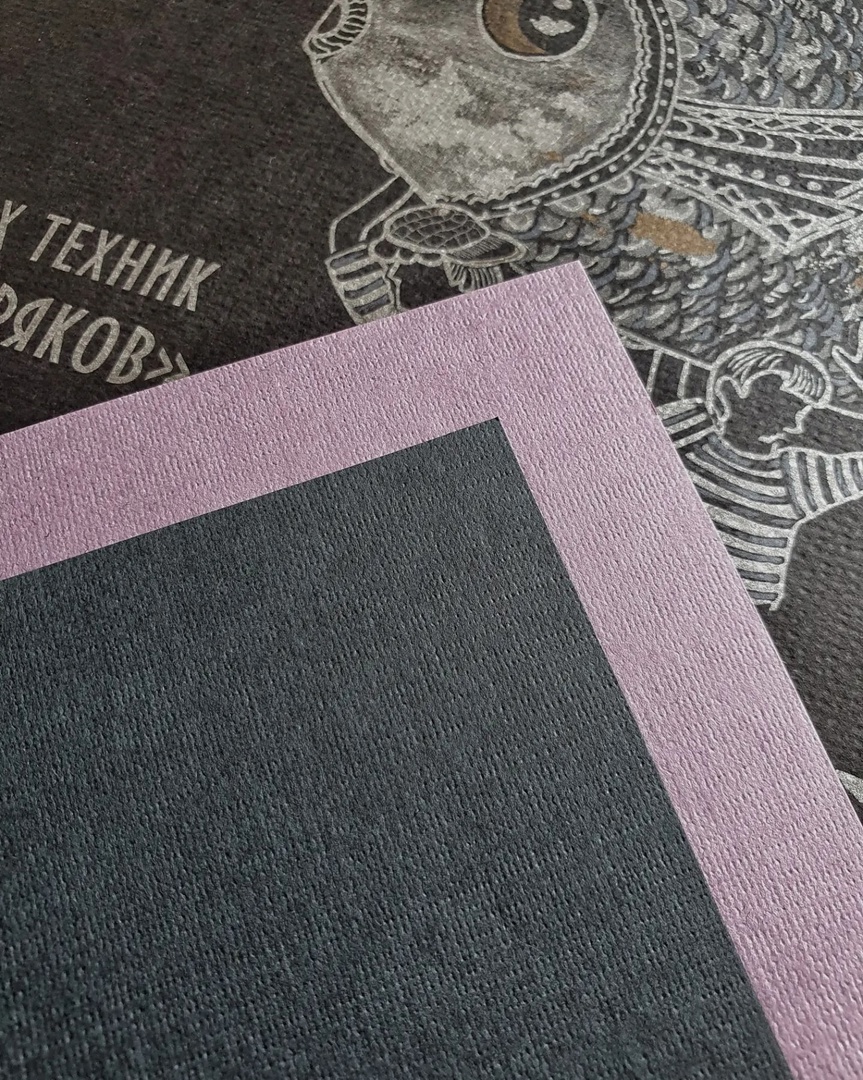 Состоит из 10 листов двух цветов: lavanda (тёмно-розовый) и цвет ground (чёрный). Бумага имеет плотность 160 г/кв. м состоит на 40 % из хлопкового волокна, тиснение холст с одной стороны.