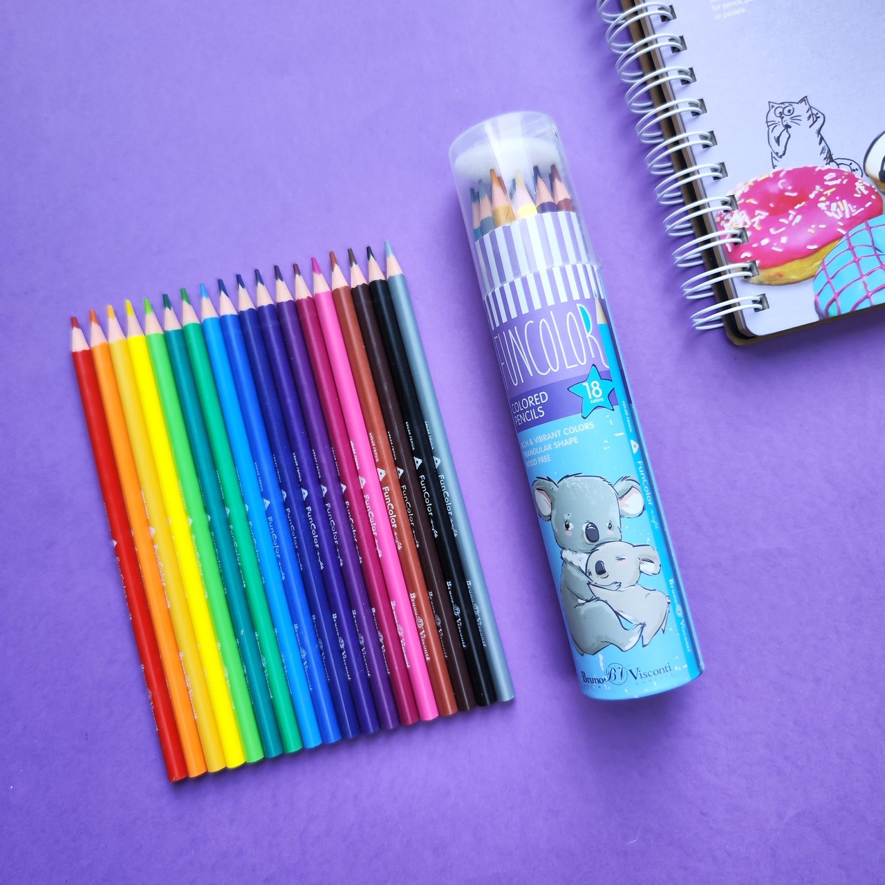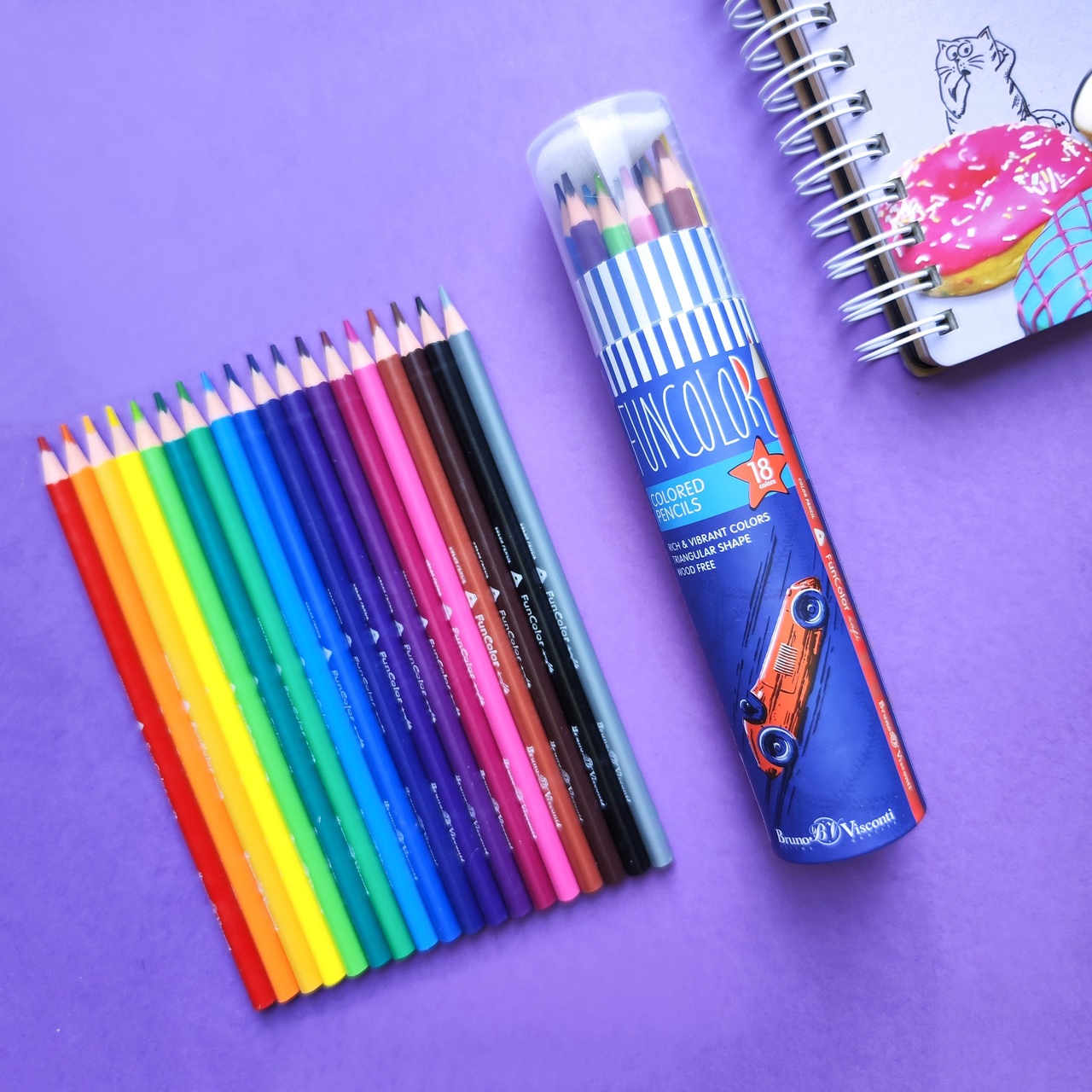 Карандаши Funcolor ТМ Bruno Visconti пластиковые, поэтому их грифель надёжно защищён от деформации и поломки. Грифель отцентрован и легко затачивается, цветные пигменты в его составе абсолютно безопасны. Карандаши рисуют ярко и мягко, оставляя на бумаге равномерный след.