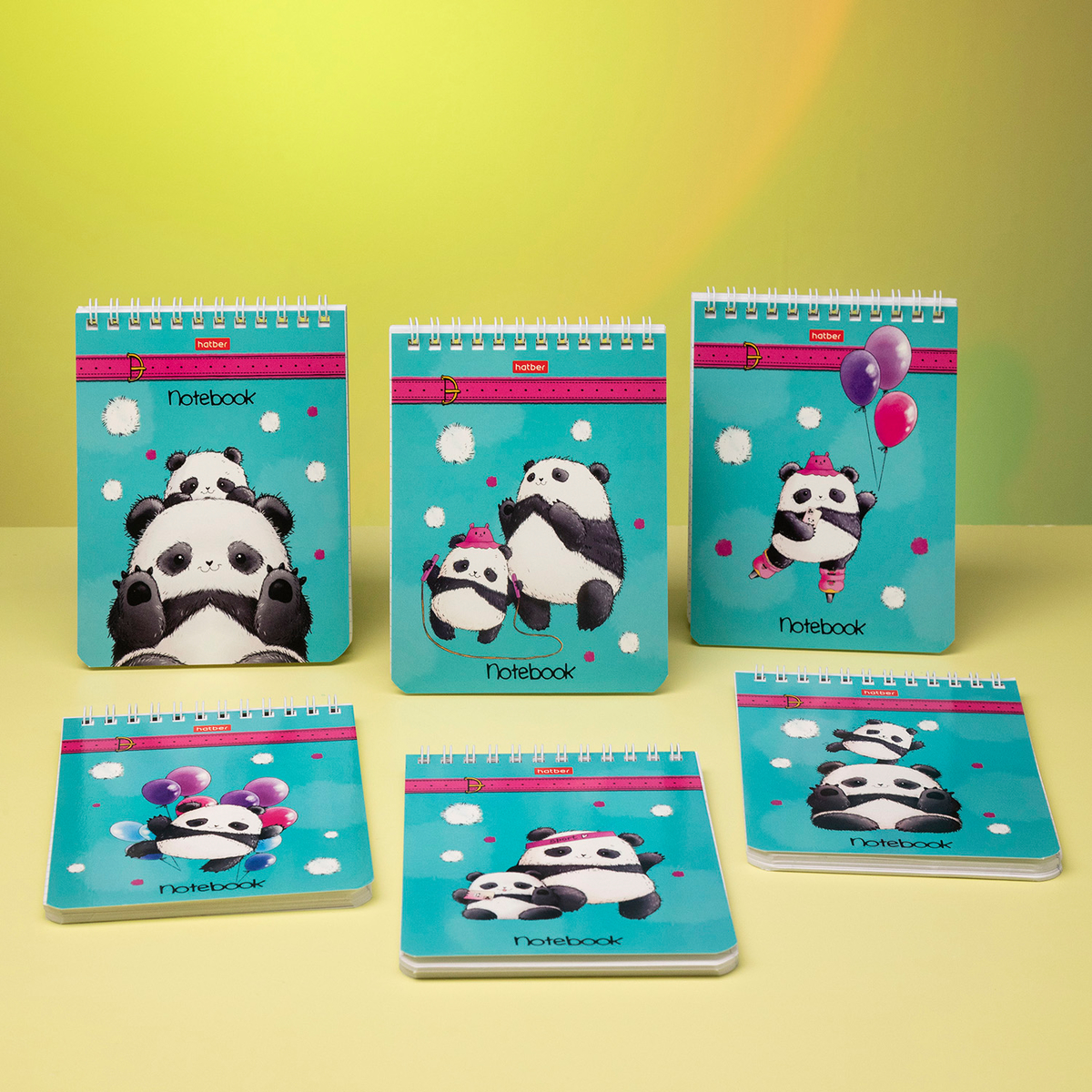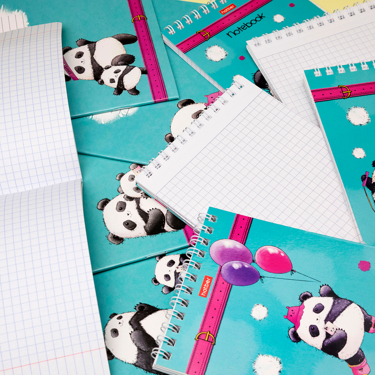 Hatber представляет новый дуэт в коллекции «Плюшевые панды», куда входят школьные тетради и блокноты формата А6 на гребне.