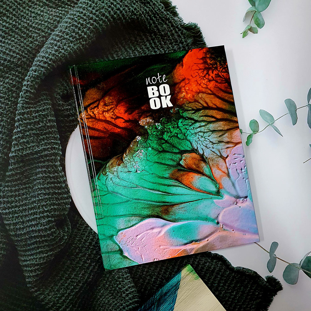 Блокноты «Индиго» и «Романтический витраж» формата А5 — 80 листов для планов и идей, а также две цветных абстракции на обложках.