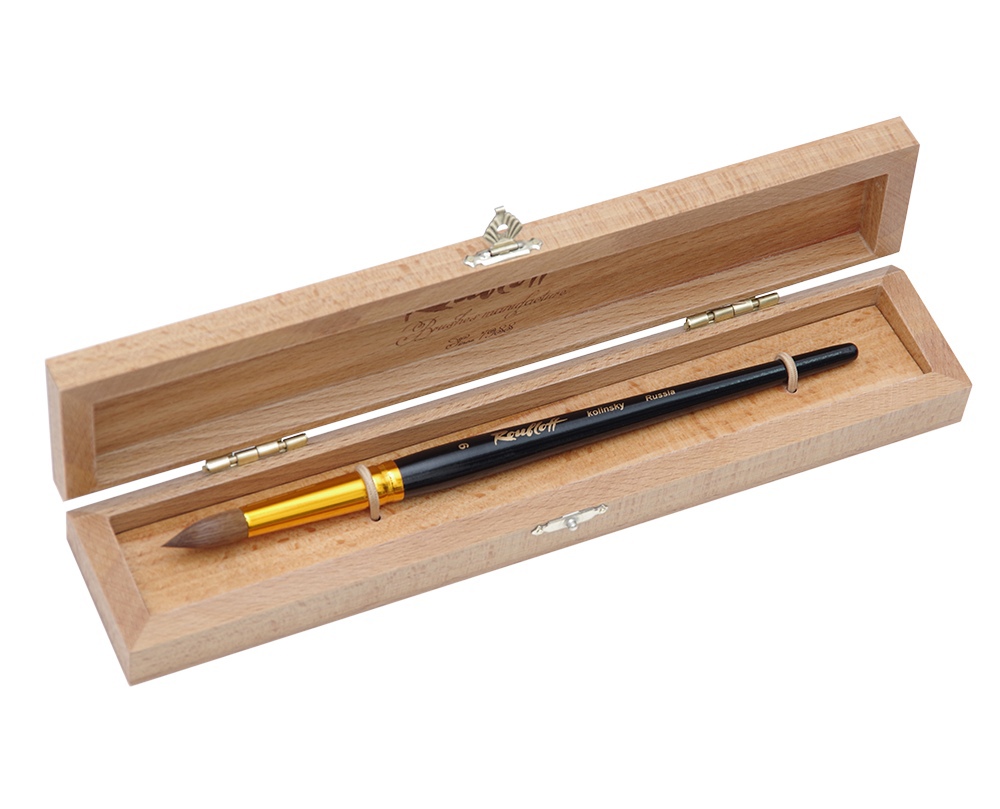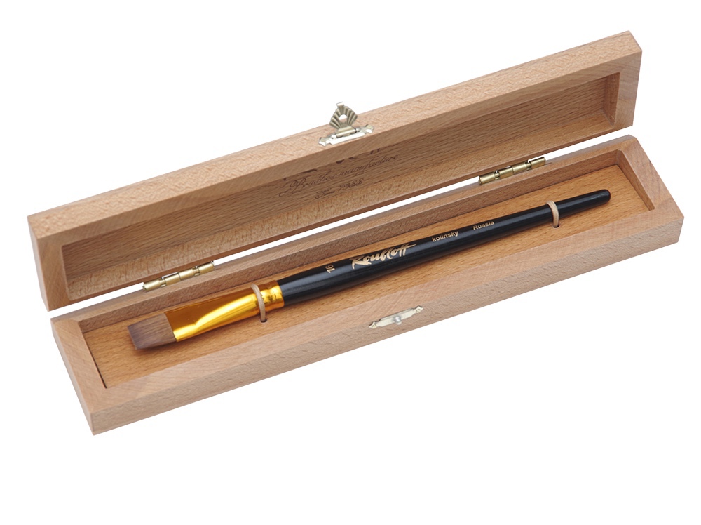 Roubloff представляет новинку — подарочную кисть колонок-LUXE. Буковый пенал с изящной застёжкой станет великолепным подарком себе или близкому человеку. Прочность материалов обеспечит комфортное хранение кисти и других пишущих инструментов (ручка, перо или карандаш). Волос колонка эластичен, а укороченная выставка придаёт ещё большую упругость, что делает эту кисть идеальной для работы как в акварельной, так и в пастозной технике. Набор выпущен в двух видах: с круглой и плоской кистью.