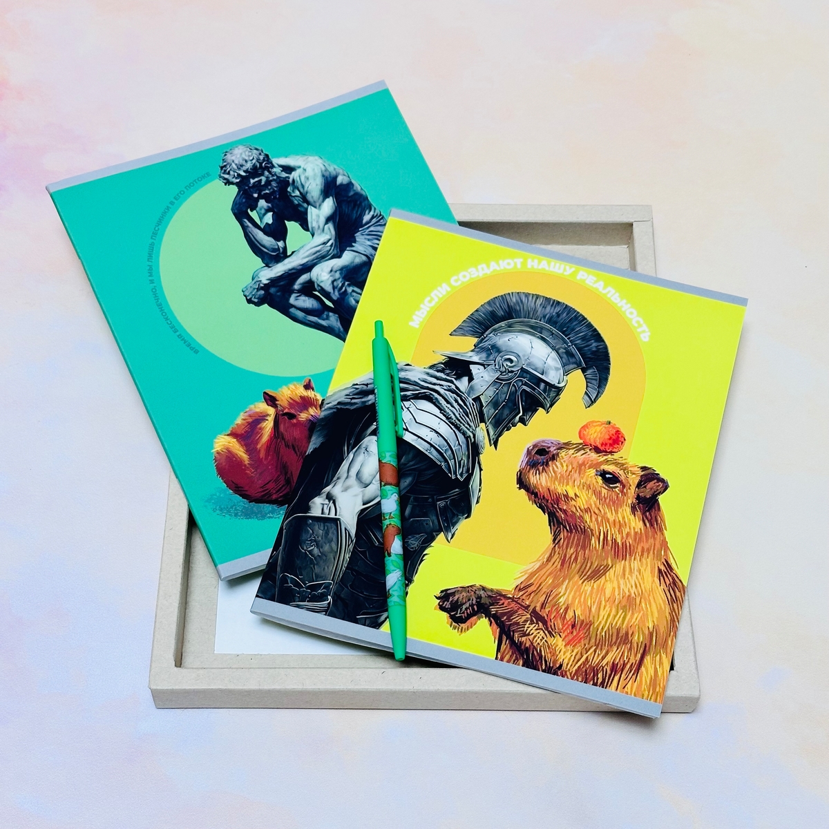 Компания Centrum представляет подарочные наборы школьных тетрадей и ручек в лаконичной крафтовой упаковке.