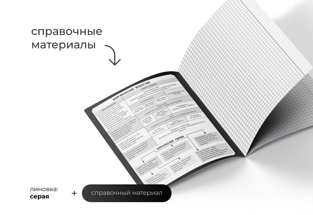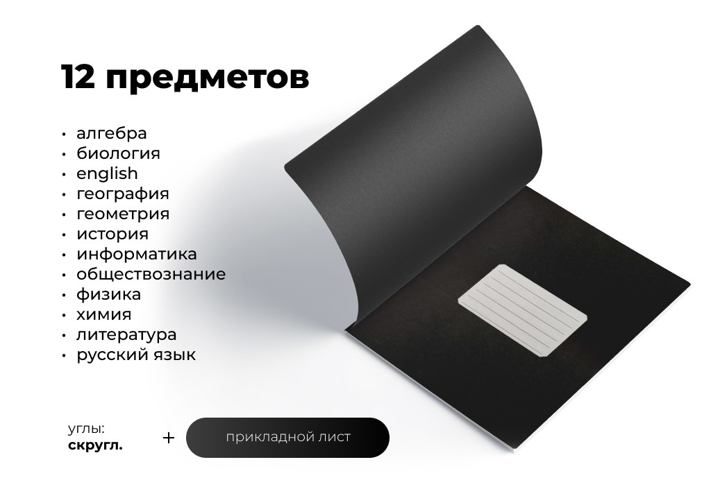 В серии представлено 10 тетрадей в клетку и 2 в линию, разработанных специально для русского языка и литературы. Используется серая линовка и скругленные углы.