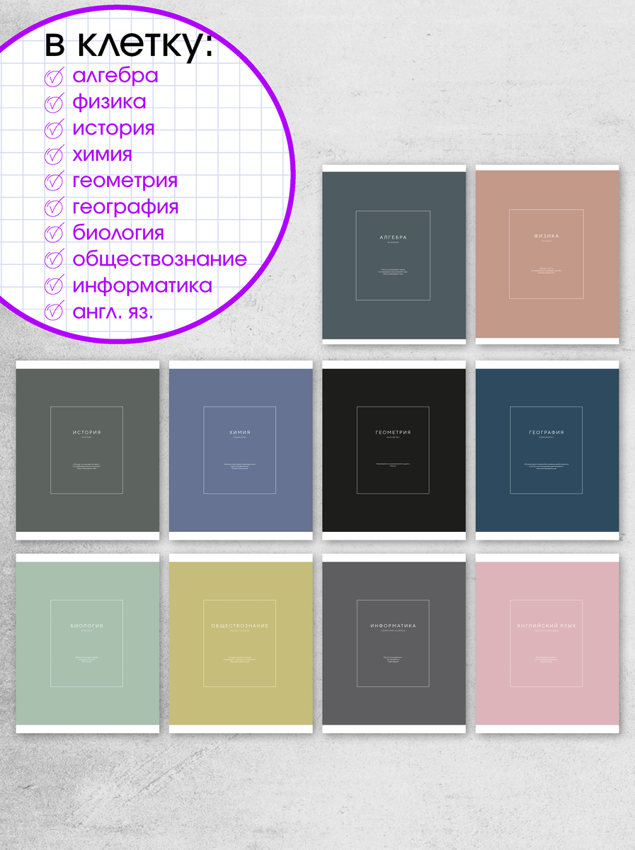 - 48 листов в клетку, русский язык и литература — в линейку.