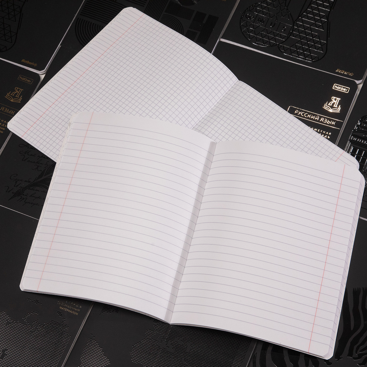 Дизайн серии дополнен типографикой, отливающей золотом благодаря 3D-фольге. Выглядит дорого и необычно, тетради хочется разглядывать и подставлять лучам света.