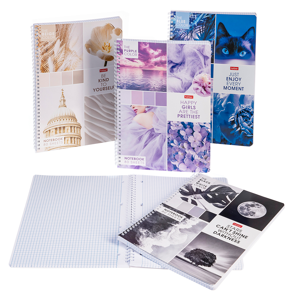Новый ассортимент тетрадей А4-формата на гребне в клетку в двух вариантах листажа: 80 и 96. Новинки представлены в разнообразных дизайнах, что дает возможность каждому найти свой, подходящий именно ему, вариант. Тетради доступны в насыщенных цветах: