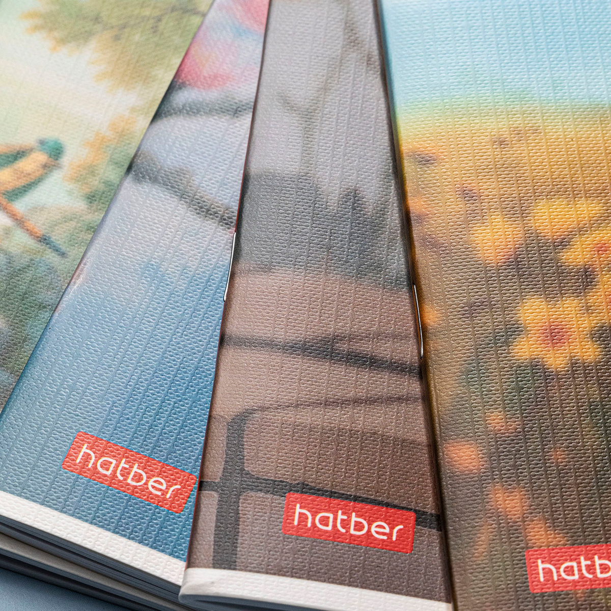 Обложки матовые, с тиснением. Приятные на ощупь и мягко играют на свету.