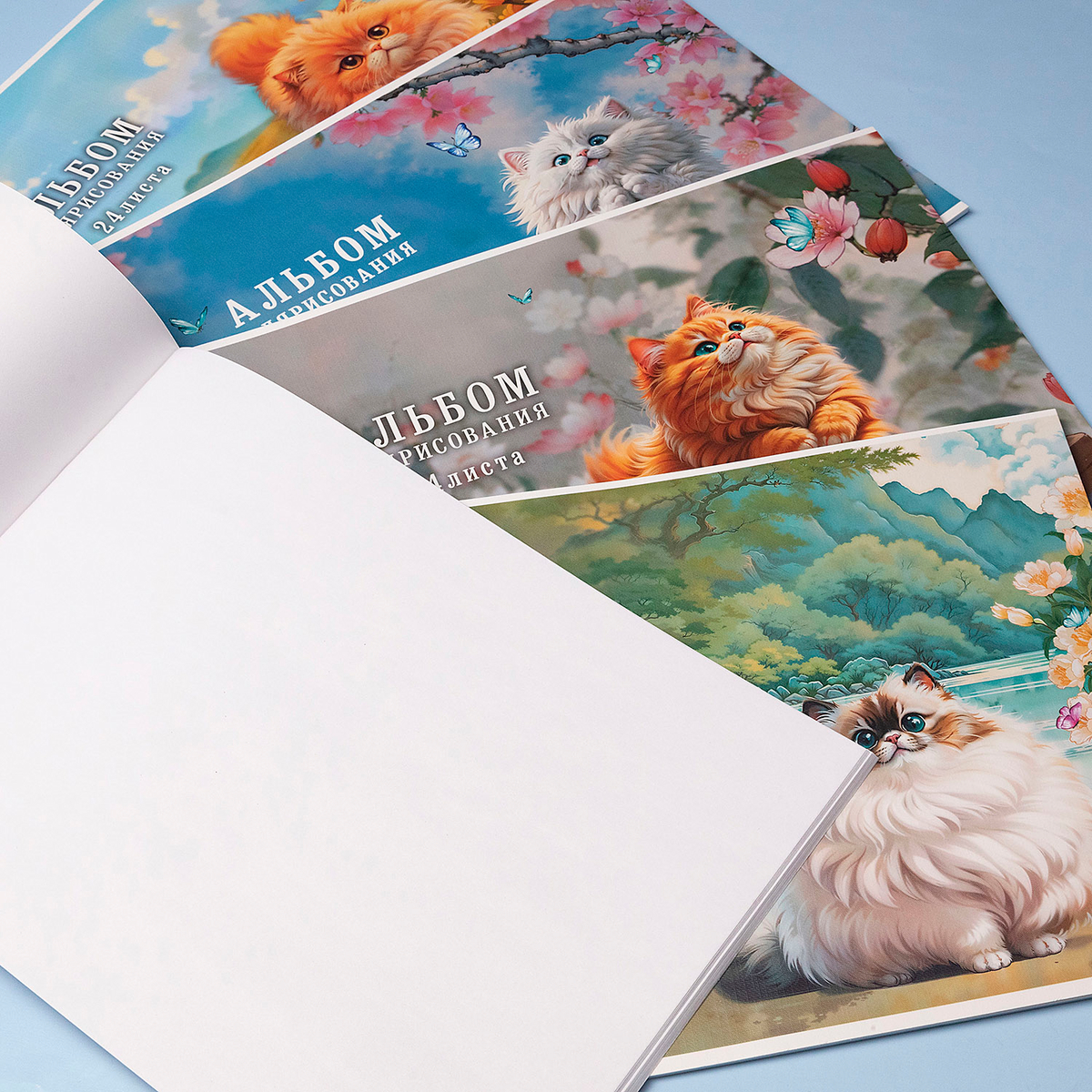 Новые альбомы для рисования «Пухляши» отлично изображают котов в своей наилучшей пушистой форме: в большом меховом шаре отлично угадываются большие внимательные глаза, ушки, пронзительные усы и вкрадчивые лапочки. Яркие пейзажи — в дополнение к мурлыкающей красоте.