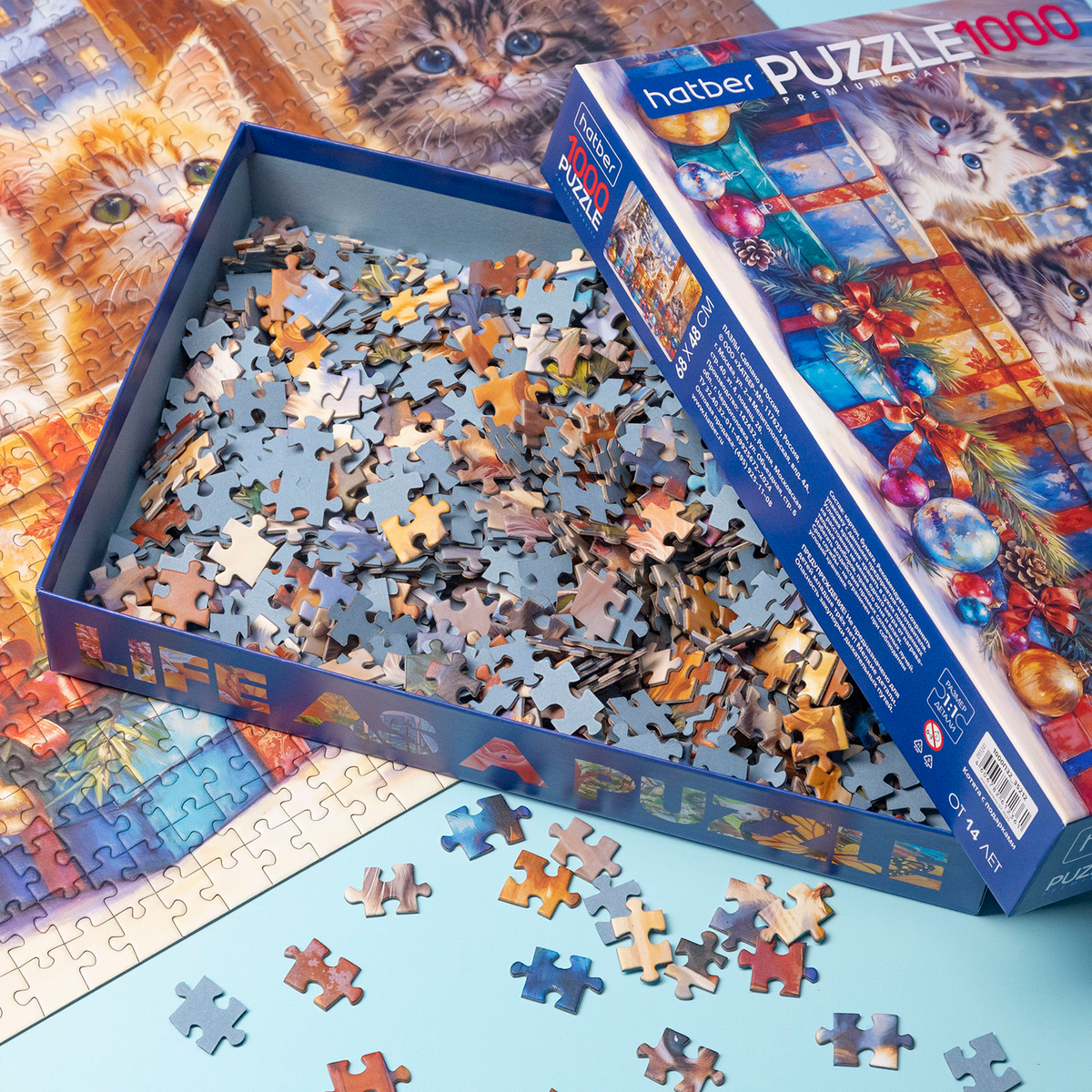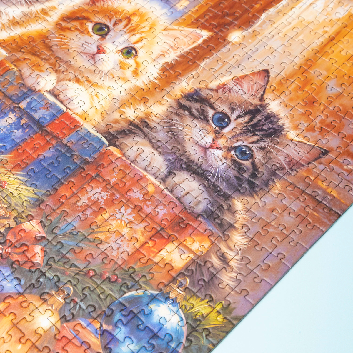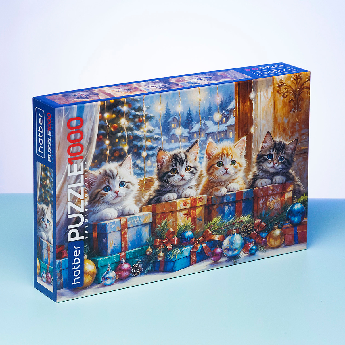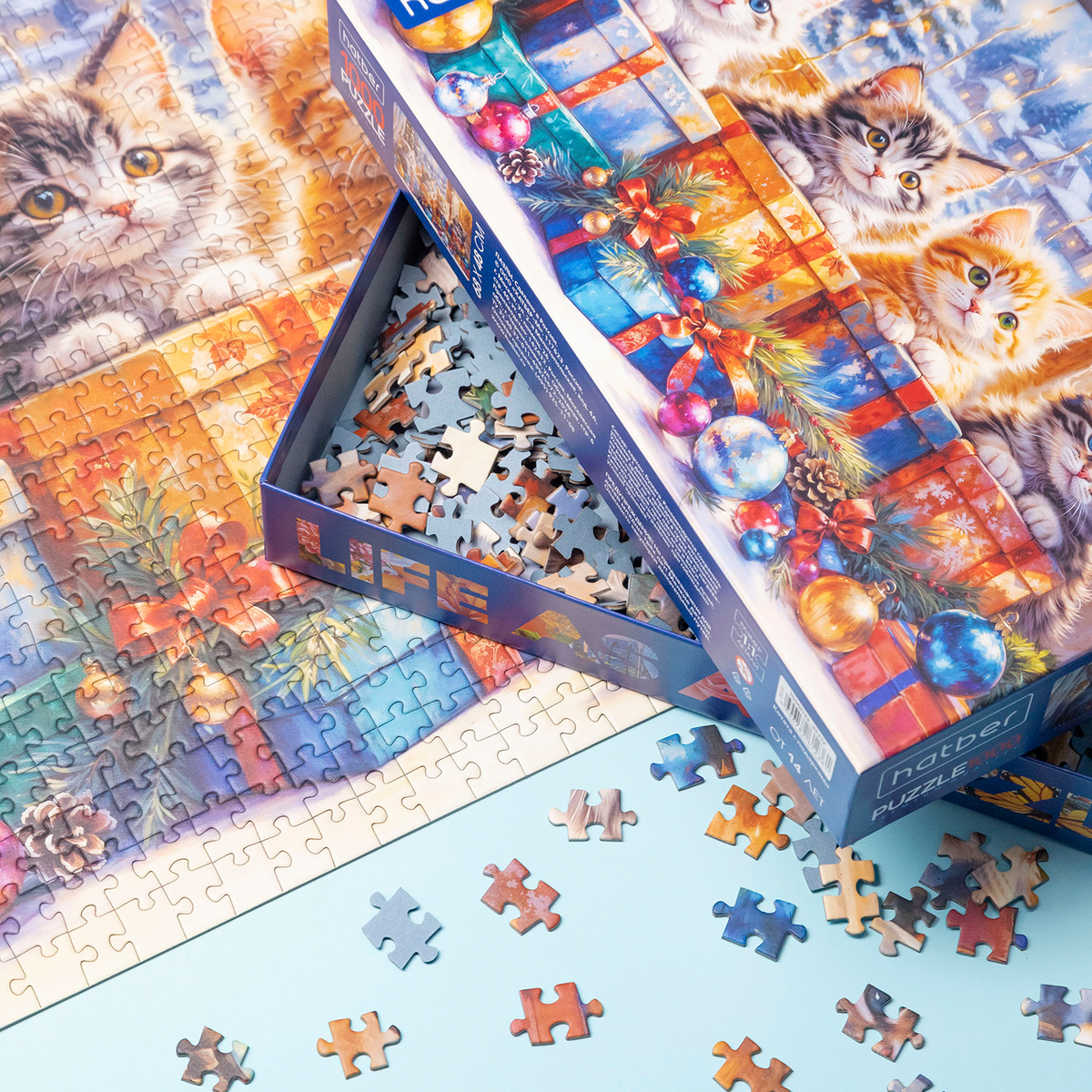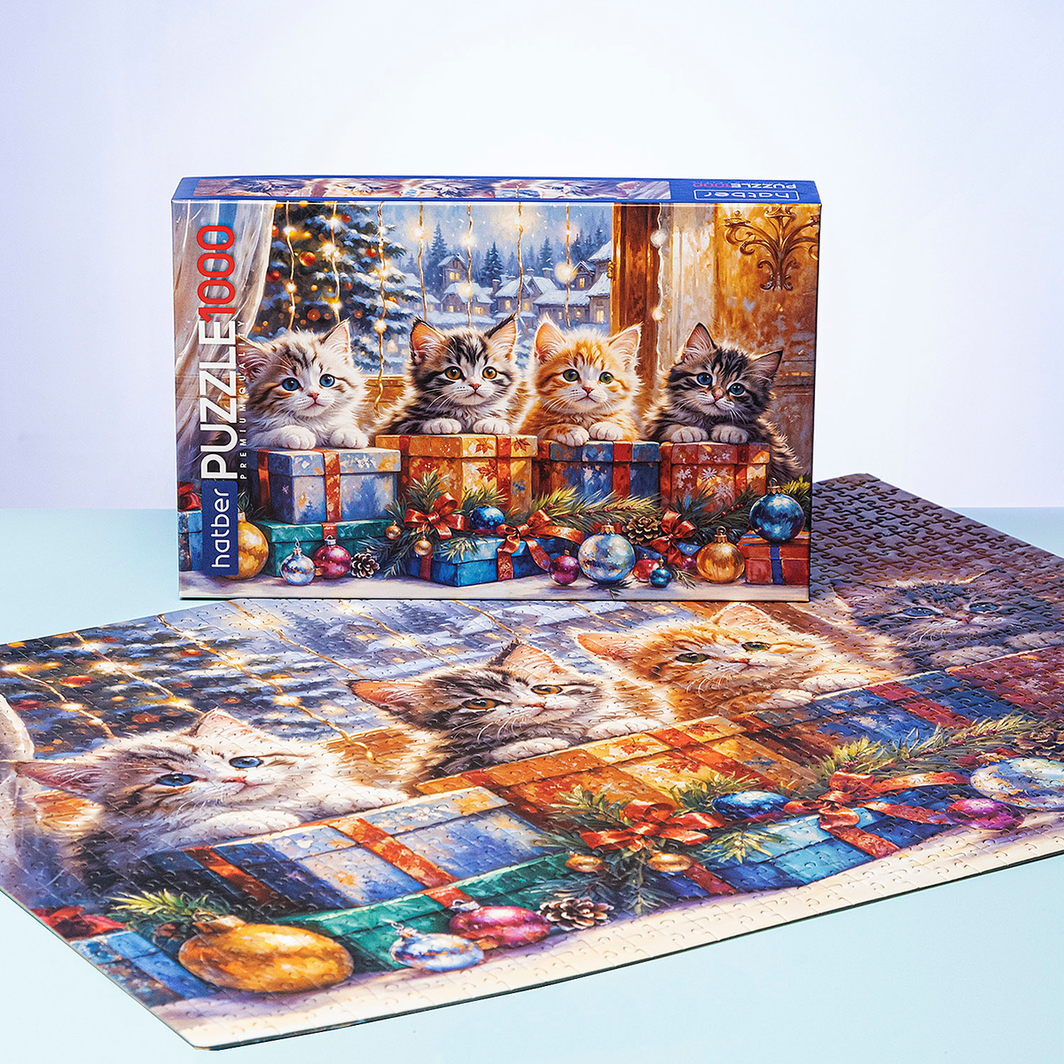 Рады представить новогодний пазл на 1000 элементов с очаровательными котятами, притаившимися среди подарков!