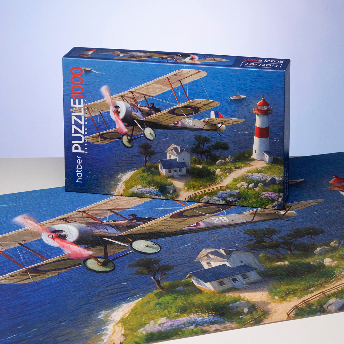 Двукрылая легенда мчит над лазурными волнами, пилот уверенно держит курс, а на берегу — маяк, стоящий на страже морских просторов. Этот момент словно замер во времени: винт крутится, солнце играет на полотне крыльев, а под самолётом раскинулась живописная береговая линия. Каждая деталь пазла — это часть динамичного полёта, которая передает атмосферу свободы и приключений.