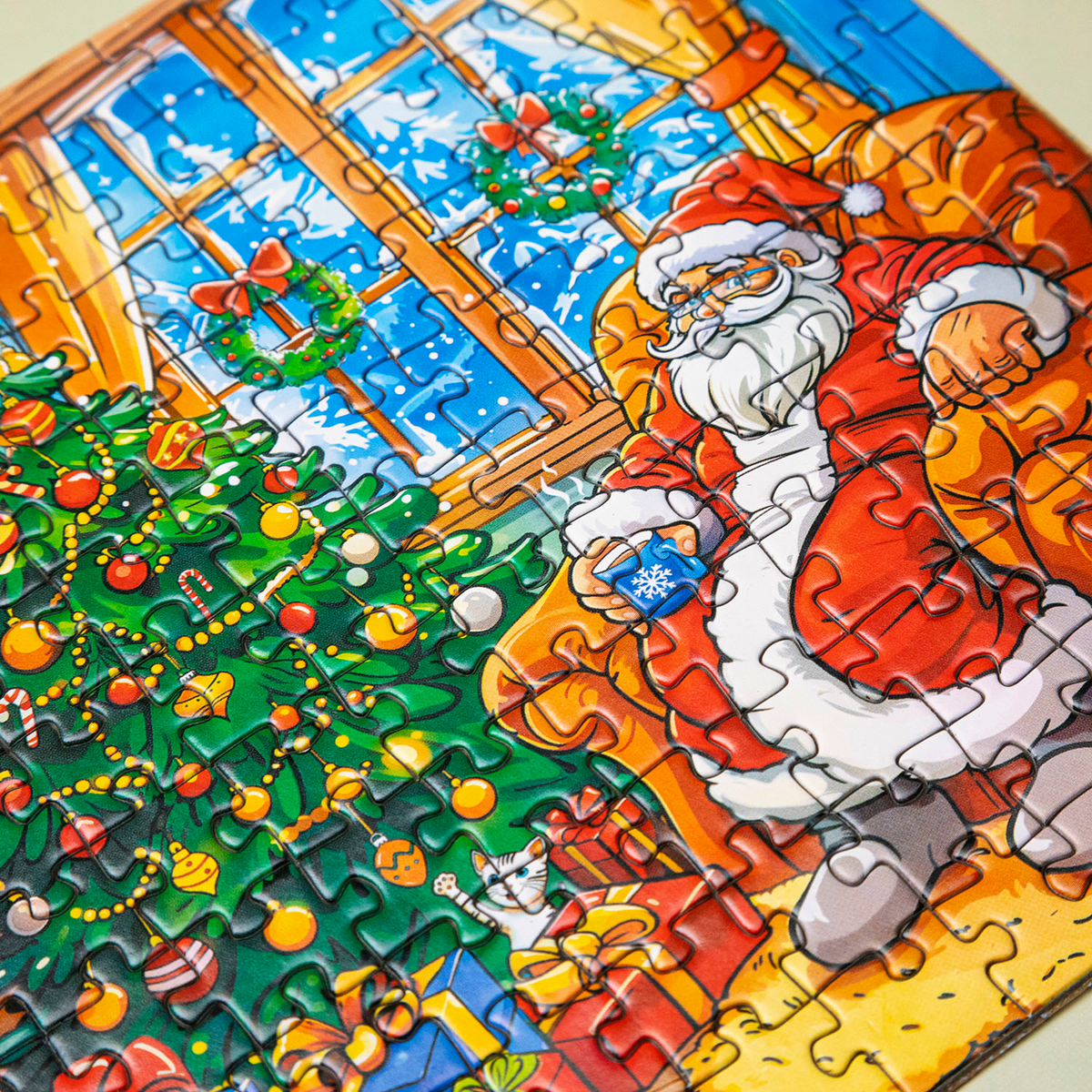 Пазл «Чудеса у елочки» приглашает в гостиную, где отдыхает Дед Мороз, а елка сверкает игрушками и огоньками, готовая к праздничному волшебству. Эта картинка оживляет в памяти самую волнительную ночь года, когда c замиранием сердца ждешь исполнения желаний.