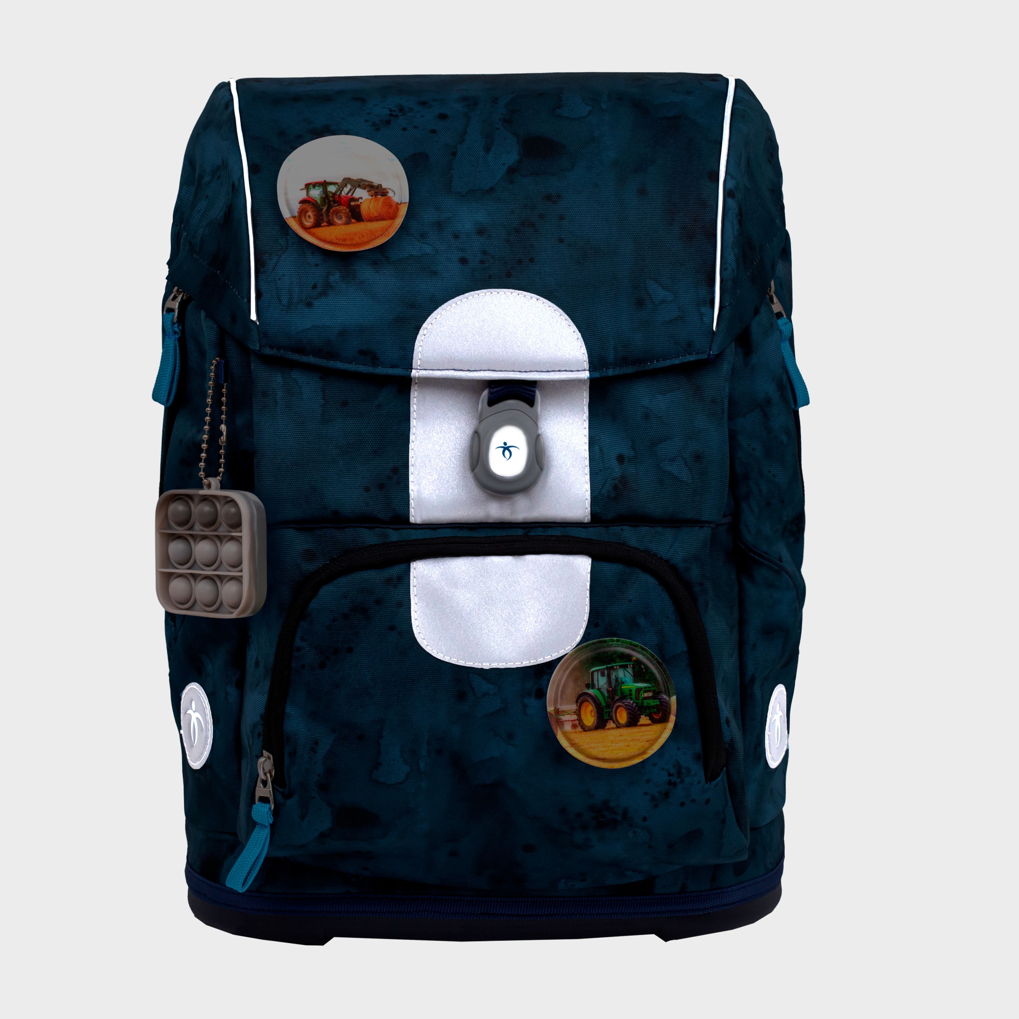 Сменные стикеры позволяют ребёнку самостоятельно выбрать дизайн и менять его по желанию. Магнитный замок со светоотражателем легко откроет и закроет даже первоклассник. Светоотражающие элементы, повышающие безопасность, по всему периметру ранца.