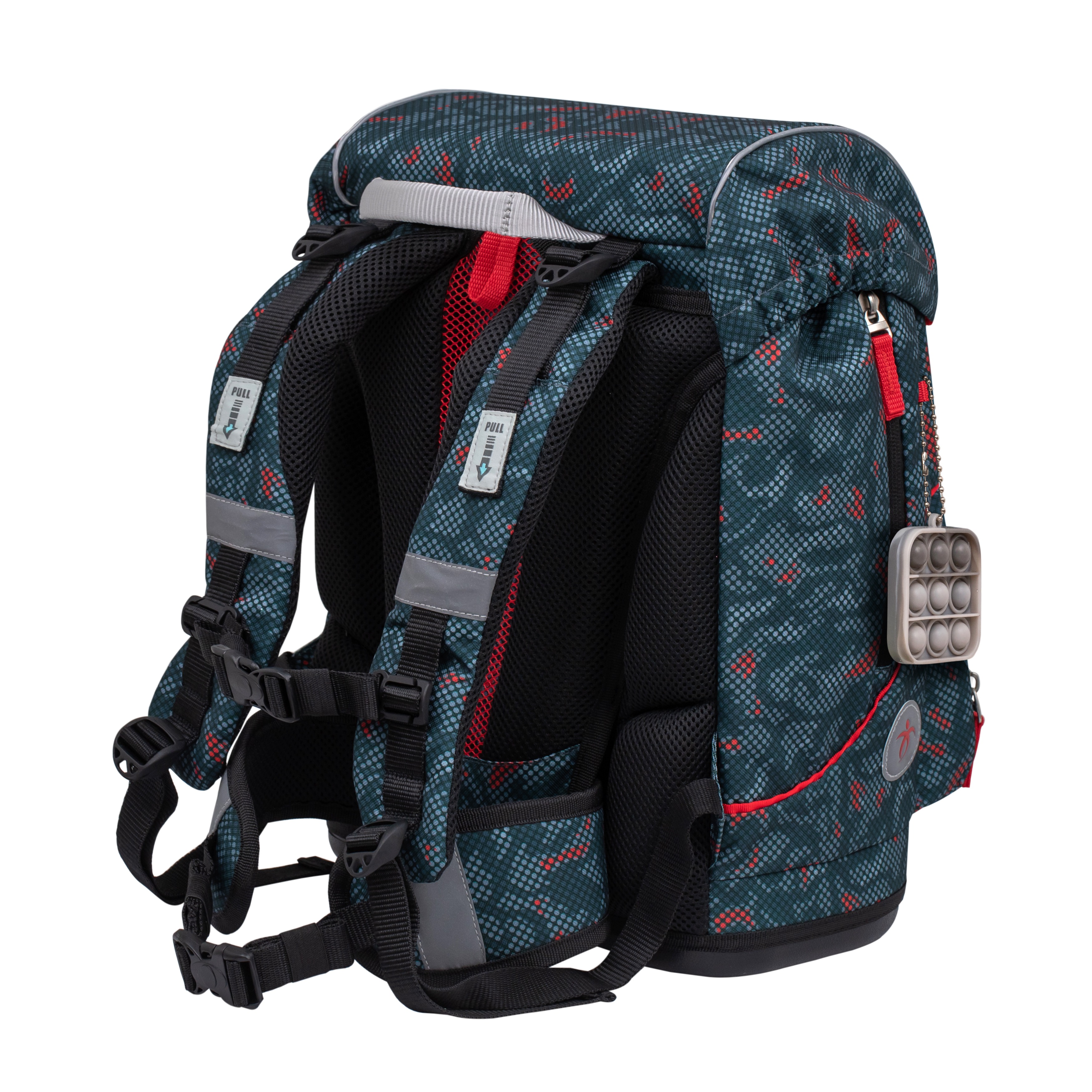 Ранец Belmil MOTION для учеников начальной школы. Конструкция спинки с регуляторами вертикального положения снижает нагрузку на позвоночник и позволяет беречь осанку школьника. Нагрудный и бедренный ремни для фиксирования ранца, регулируемые наплечные лямки, мягкая и удобная ручка для переноски.