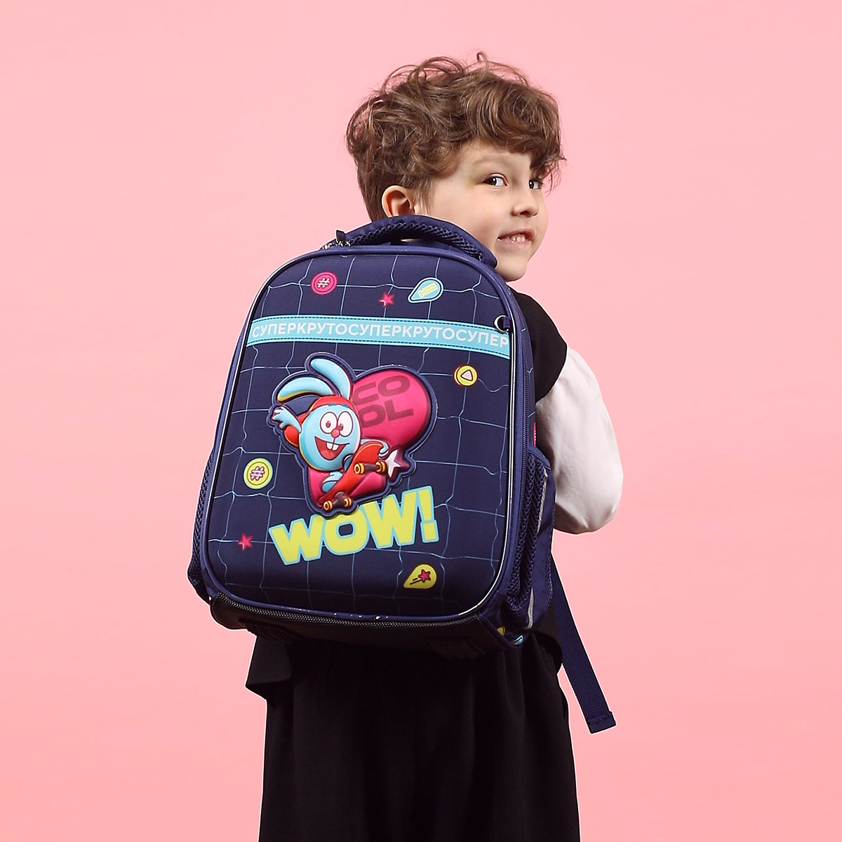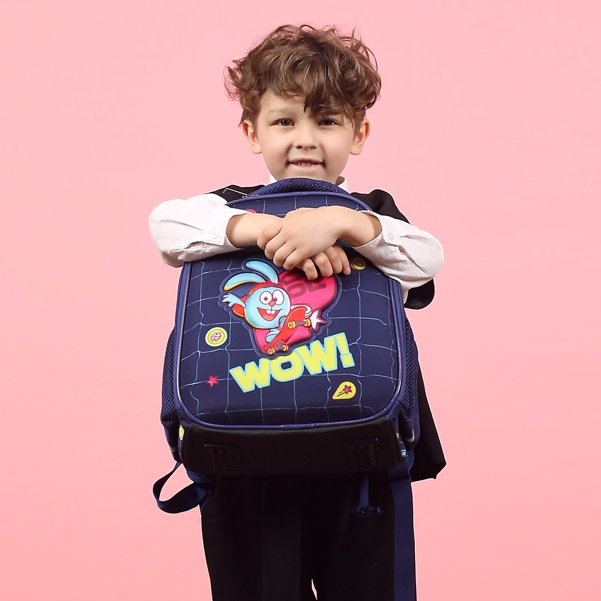Яркий ранец порадует звездой мультсериала: ушастый Крош на скейте весел и активен. Совсем как маленькие дети!