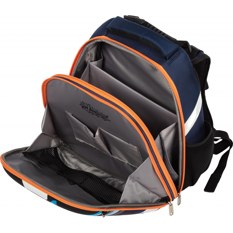 Грудная застёжка помогает лучше зафиксировать ранец на теле и снять часть нагрузки с плеч, что очень важно для здоровья позвоночника. Светоотражатели на передней части, лямках и над боковыми карманами обезопасят ребёнка при переходе проезжей части дороги в тёмное время суток.